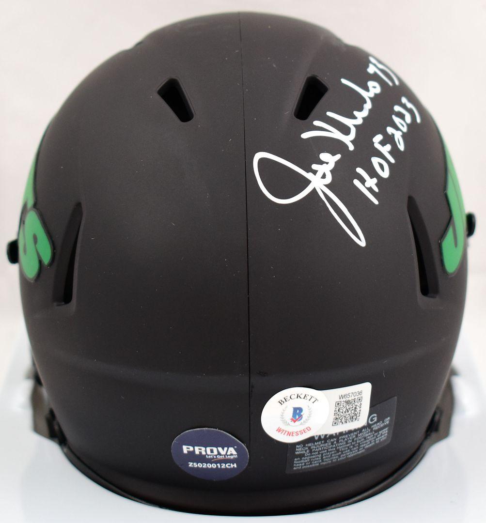 Riddell New York Jets Eclipse Alternate Speed Mini Helmet has been hand-signed and inscribed by Joe Klecko (HOF).