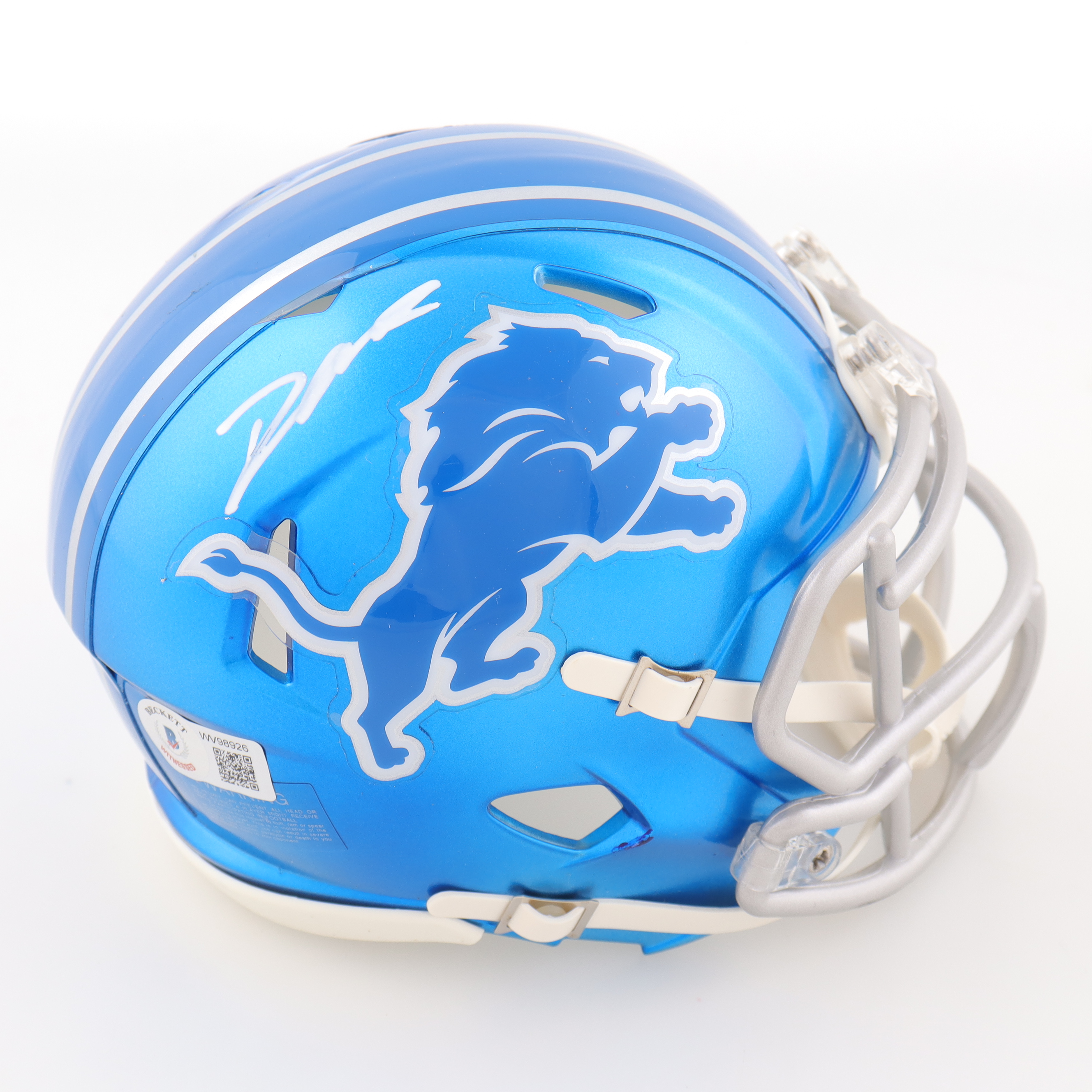 Riddell Detroit Lions Flash Alternate Speed mini helmet. Hand-signed by D'Andre Swift.