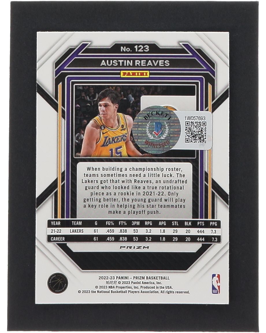 Card has been hand-signed by Austin Reaves (Los Angeles Lakers). Please see photos for details regarding the condition of the card.