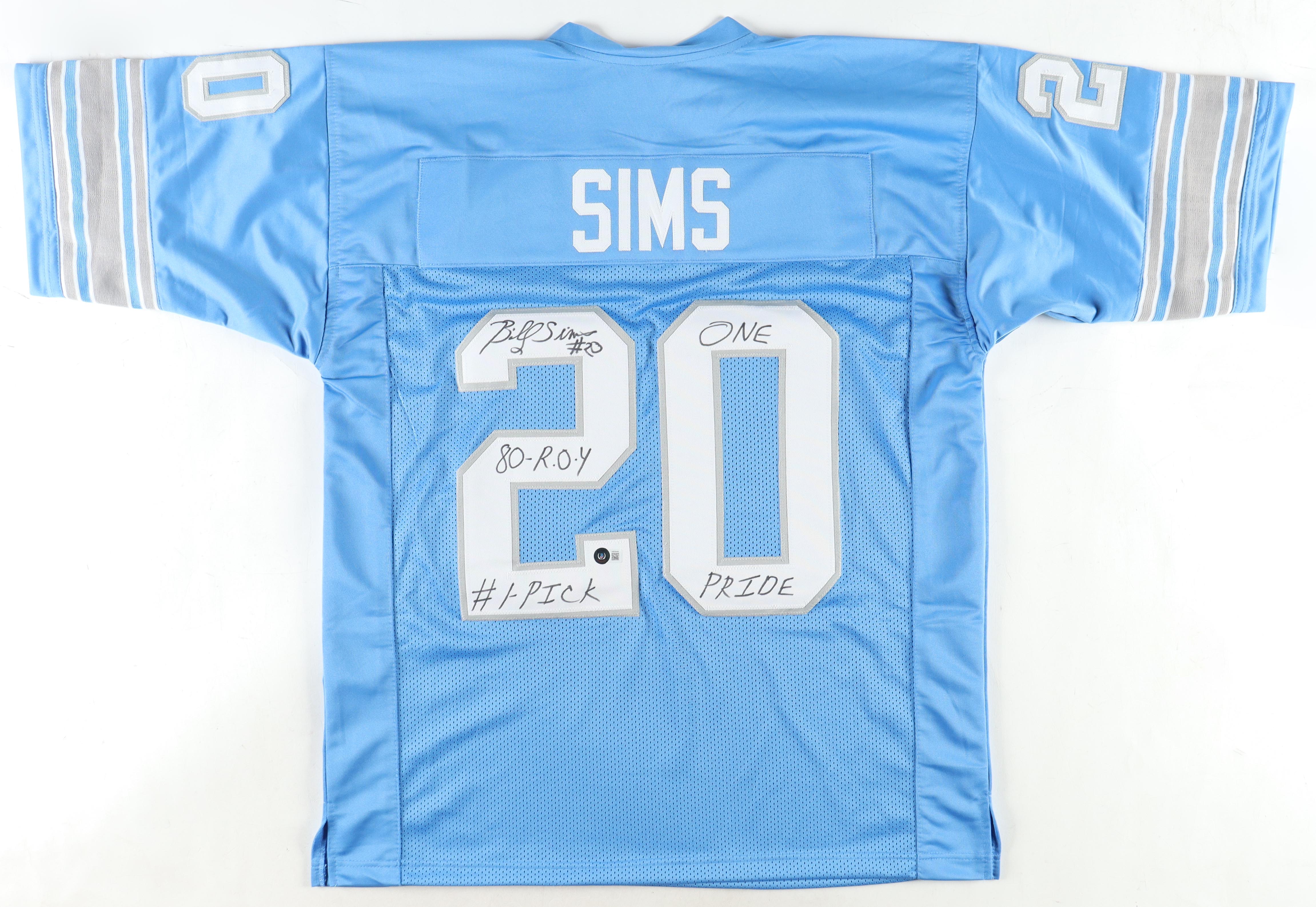 Billy Sims Signed Jersey Inscribed "80-R.O.Y.", "#1-Pick" & "One Pride" (Beckett)