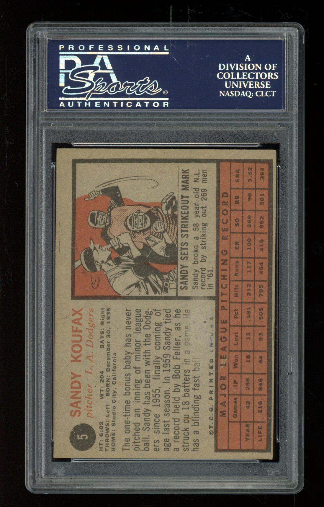 Sandy Koufax 1962 Topps #5 (PSA 5) (MK)