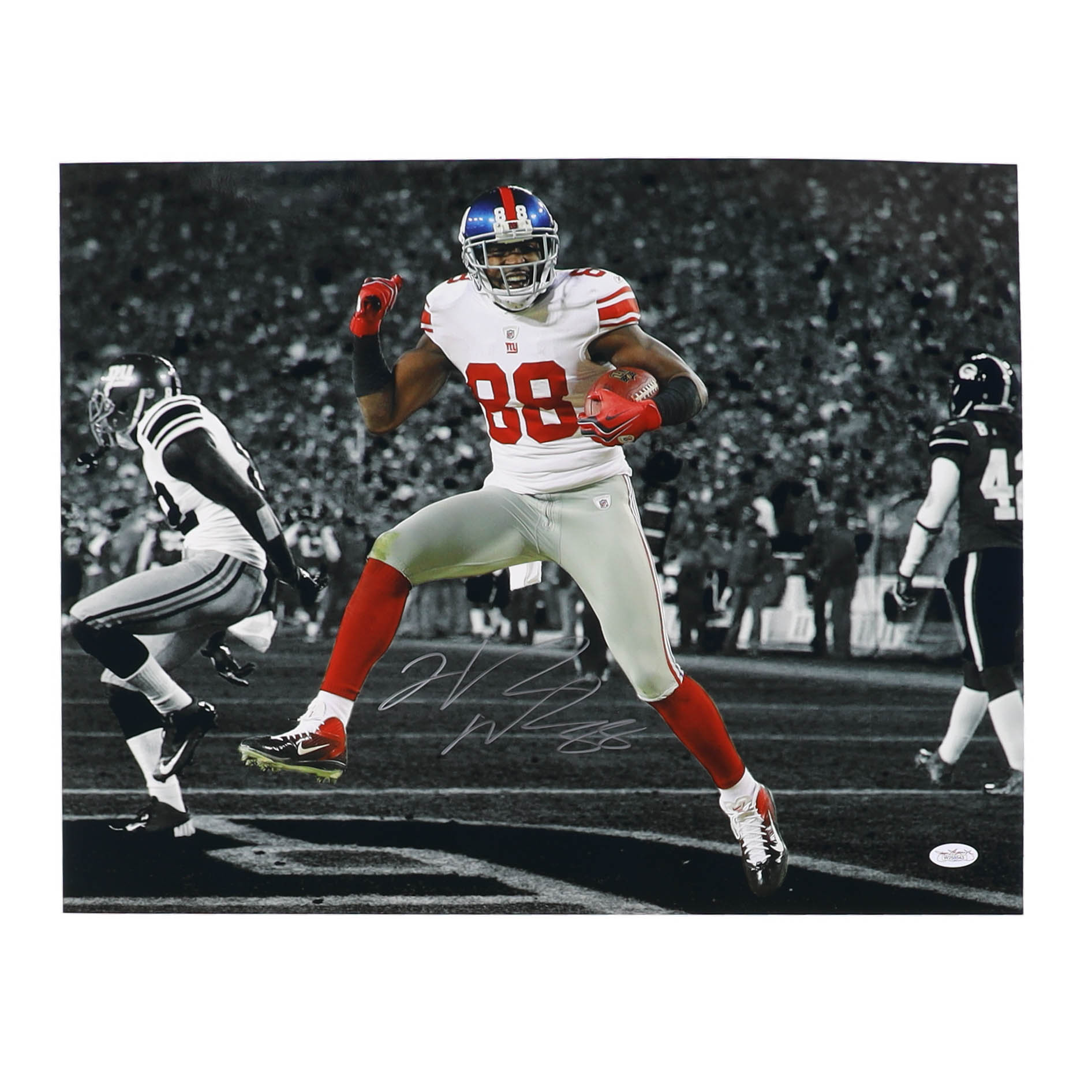 Photo measures 16" x 20" in size and has been hand-signed by Hakeem Nicks (New York Giants).