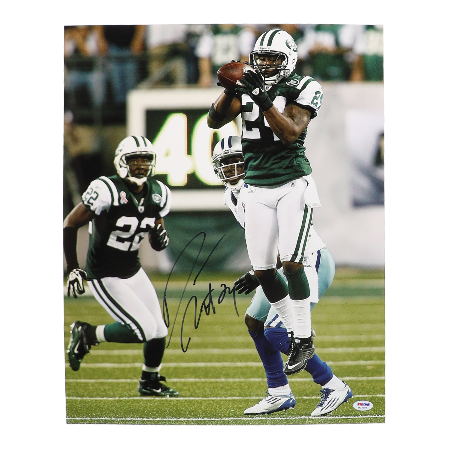 Photo measures 16" x 20" in size. Hand-signed by Darrelle Revis (New York Jets, HOF).