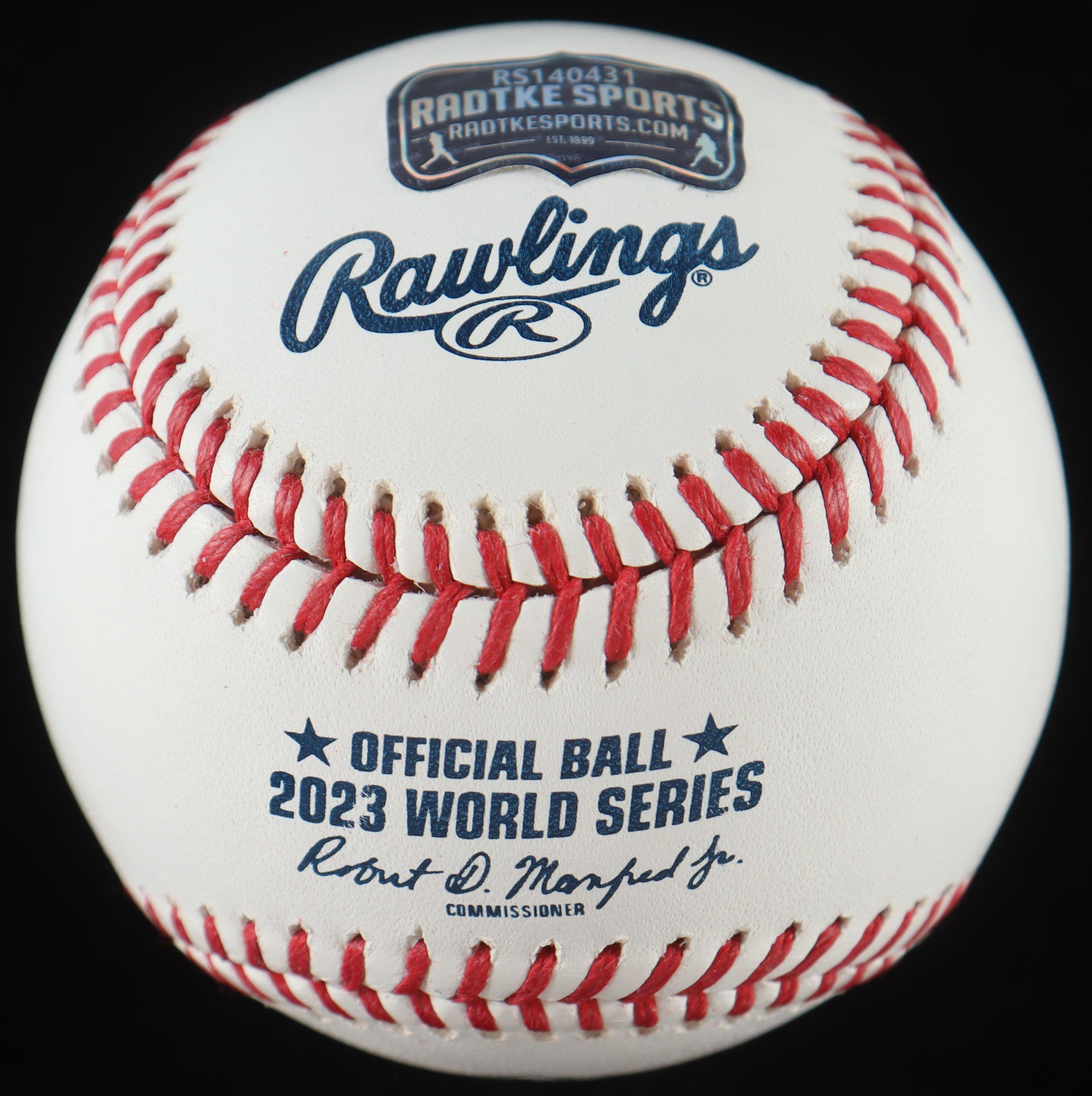 Rawlings Official 2023 World Series baseball. Hand-signed and inscribed by Will Smith (Houston Astros).