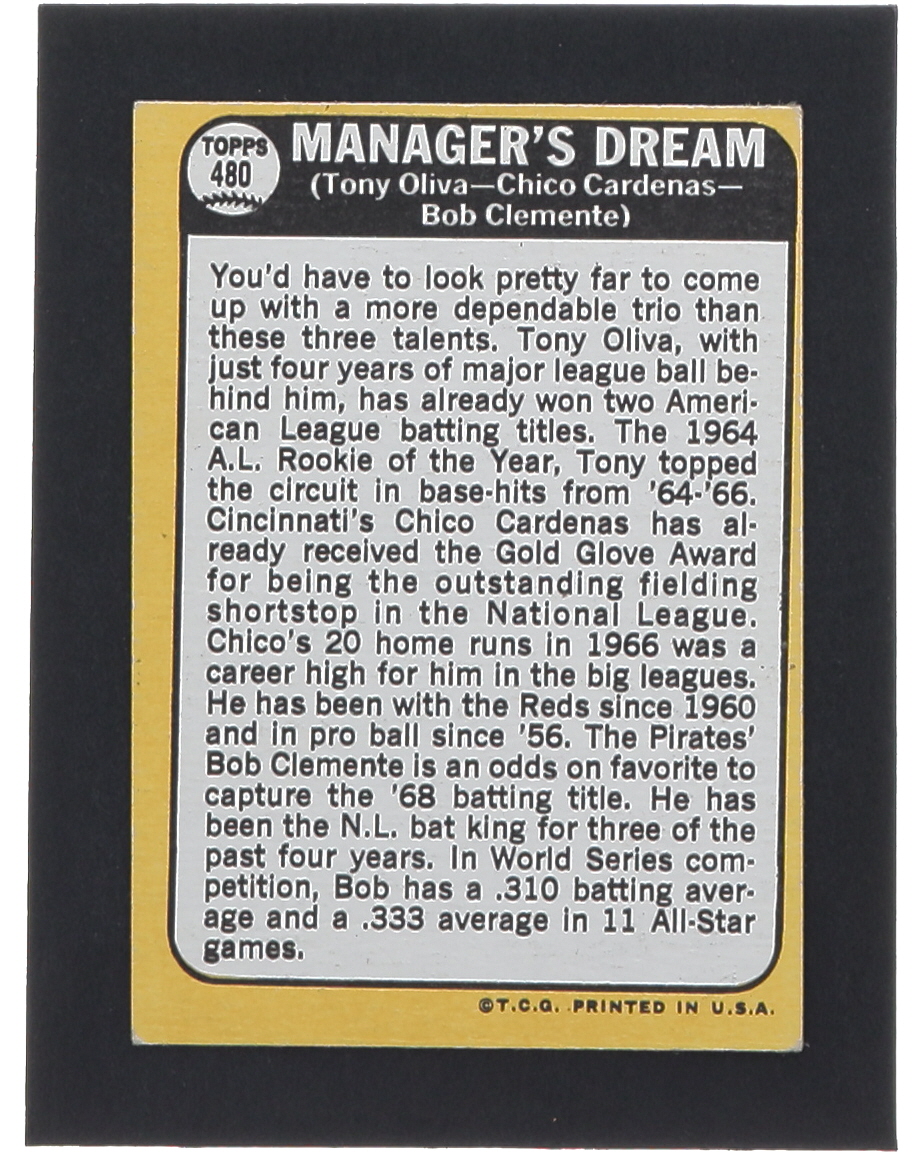Tony Oliva / Chico Cardenas / Bob Clemente 1968 Topps #480 / Manager's Dream