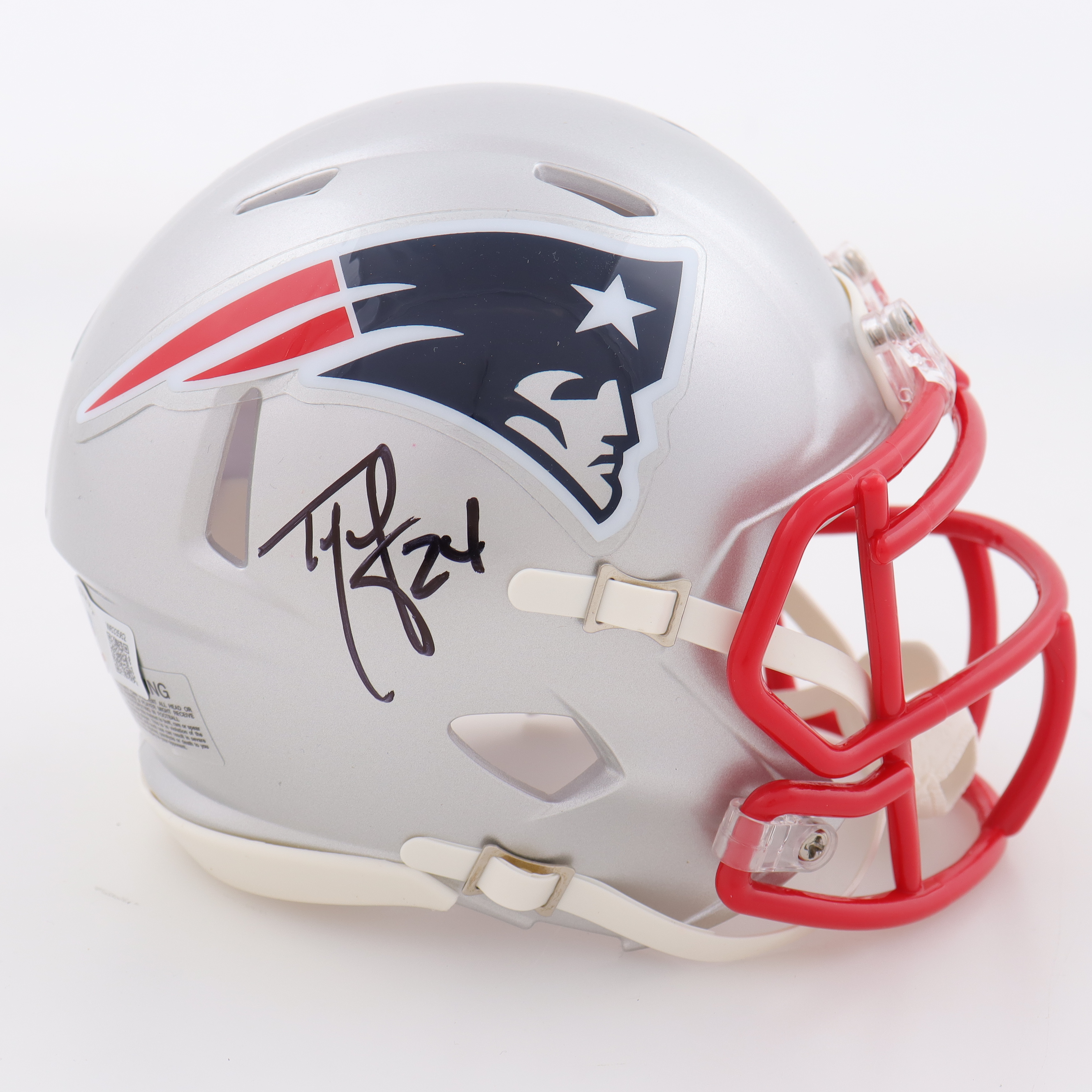 Riddell New England Patriots Speed Mini Helmet. Hand Signed by Ty Law.