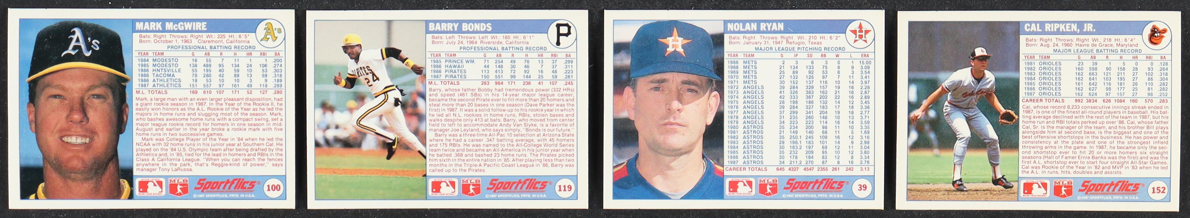 1988 Sportflics Baseball Complete Set of (225) Cards with Mark McGwire #100, Barry Bonds #119, Nolan Ryan #39, Cal Ripken #152