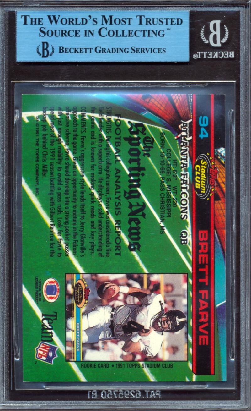Brett Favre Signed 1991 Stadium Club #94 RC (BGS)
