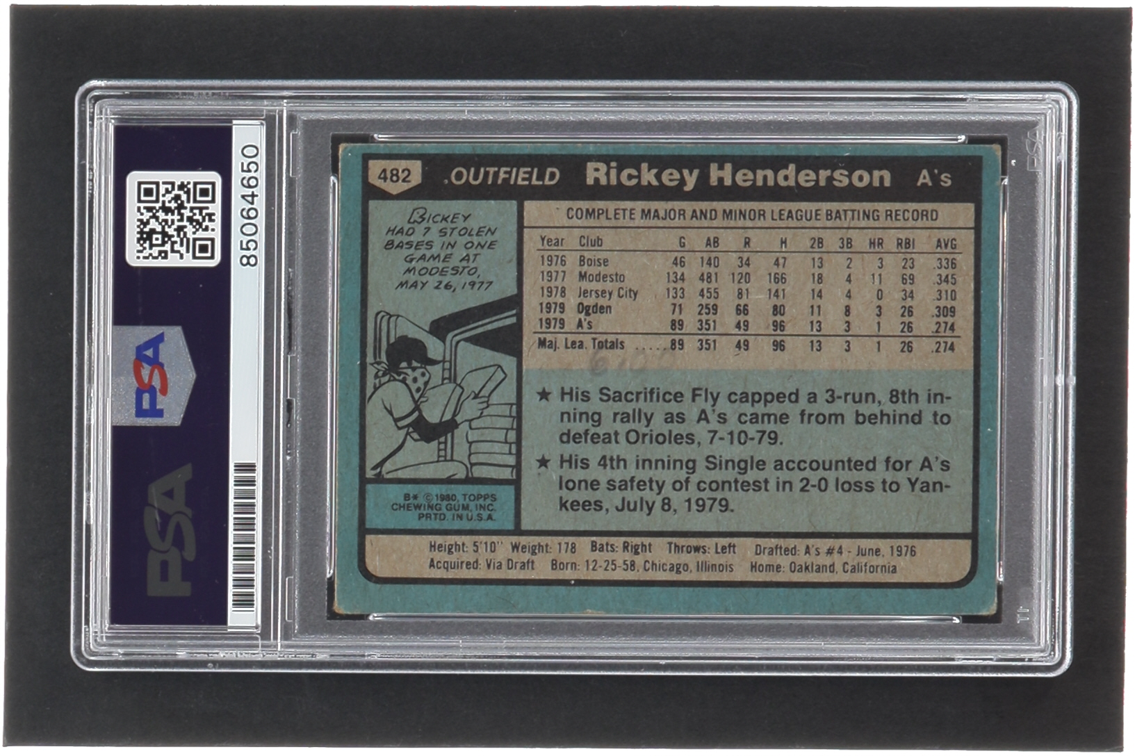 Rickey Henderson Signed 1980 Topps #482 RC (PSA | Auto 10)
