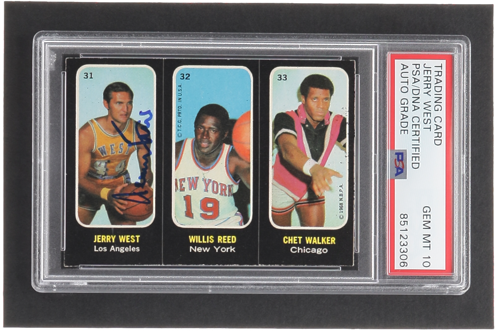 Jerry West Signed 1971-72 Topps Trios #31 Jerry West / 32 Willis Reed / 33 Chet Walker (PSA | Auto 10)
