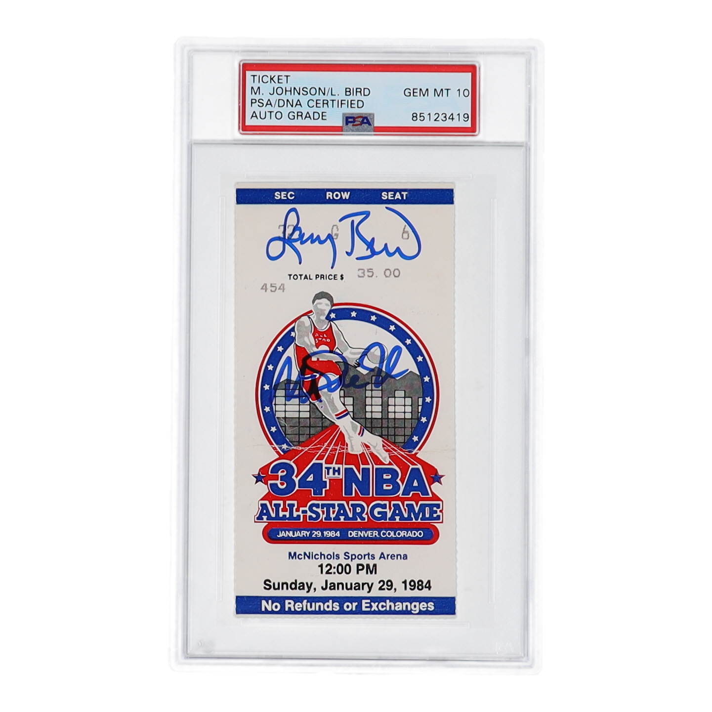 Magic Johnson & Larry Bird Signed 1984 NBA All-Star Game Ticket (PSA | Auto Grade 10)