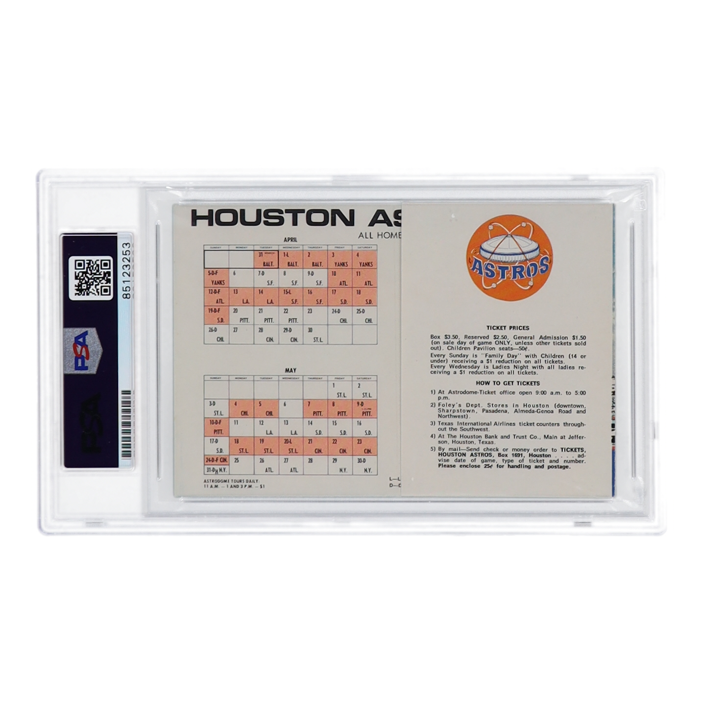 Nolan Ryan Signed 1970 Original Houston Astrodome Vintage Schedule (PSA | Autograph Graded 10)