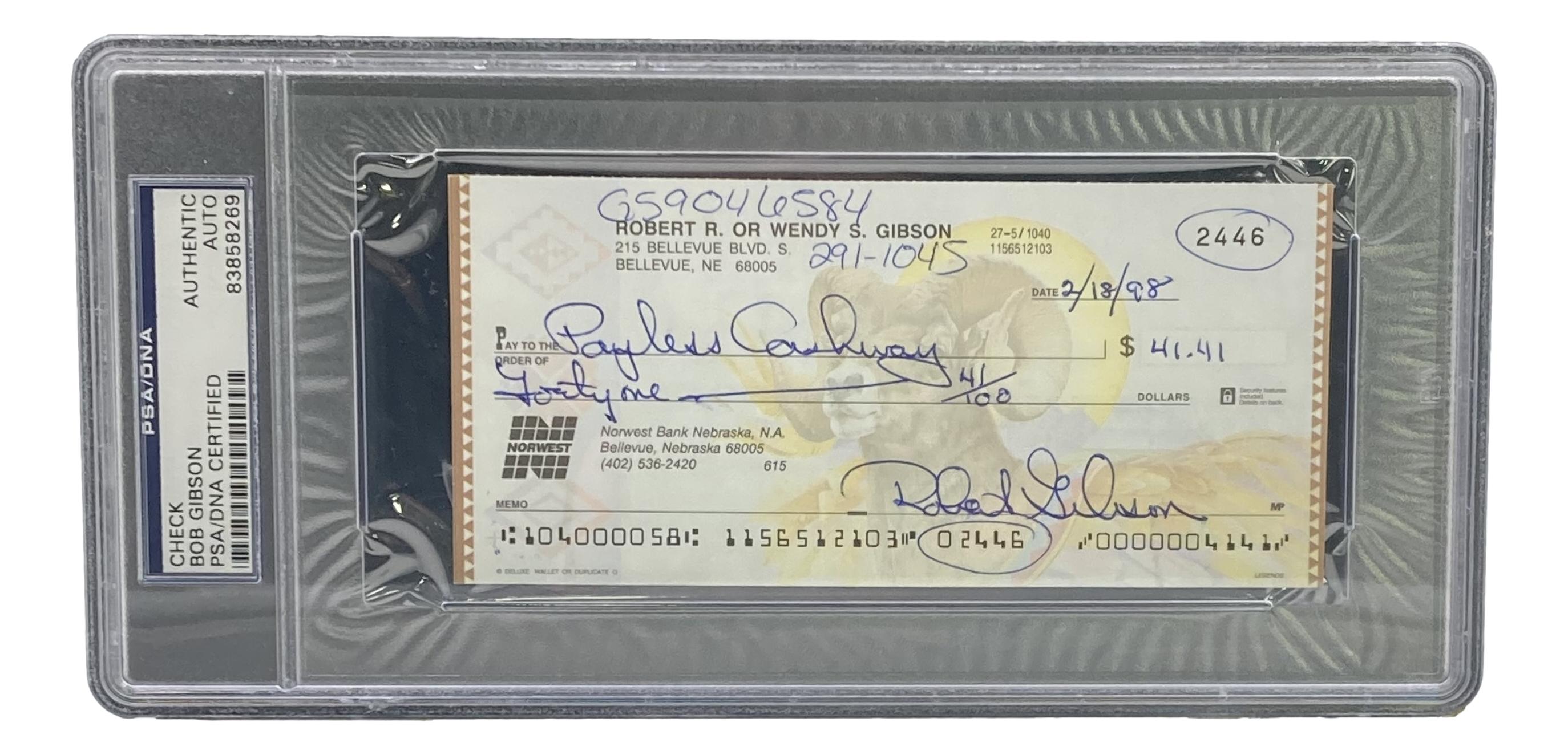 Bob Gibson Signed Northwest Bank Check (PSA)