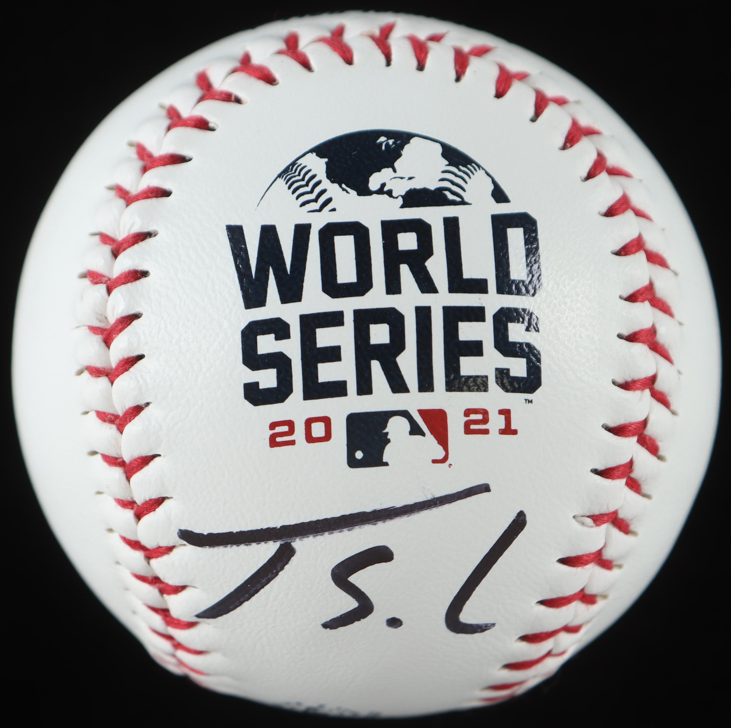 Rawlings Official 2021 World Series Champions baseball. Hand-signed by Jorge Soler (Atlanta Braves).