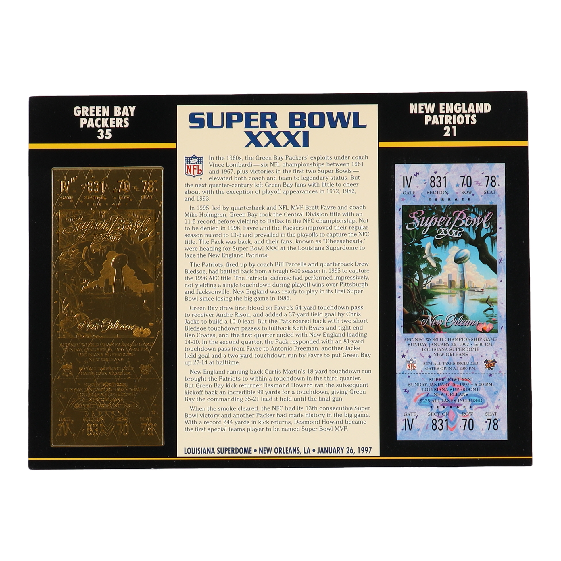 1997 Commemorative Super Bowl XXXI Card with 23 Karat Gold Ticket: Green Bay Packers Super Bowl Champions