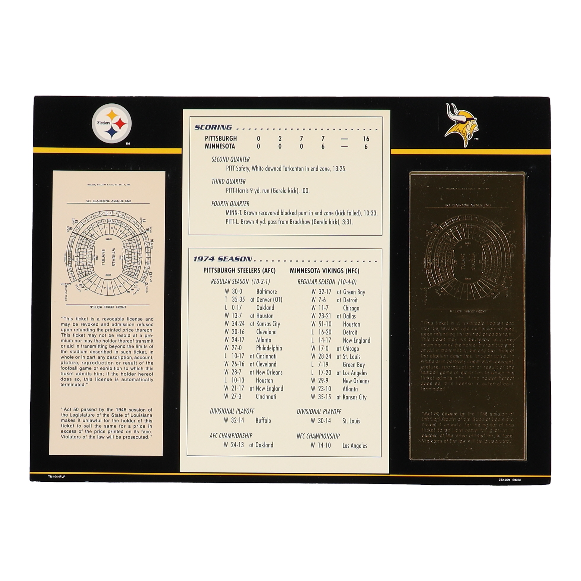 1975 Commemorative Super Bowl IX Card with Commemorative 23 Karat Gold Ticket: Pittsburgh Steelers Super Bowl Champions