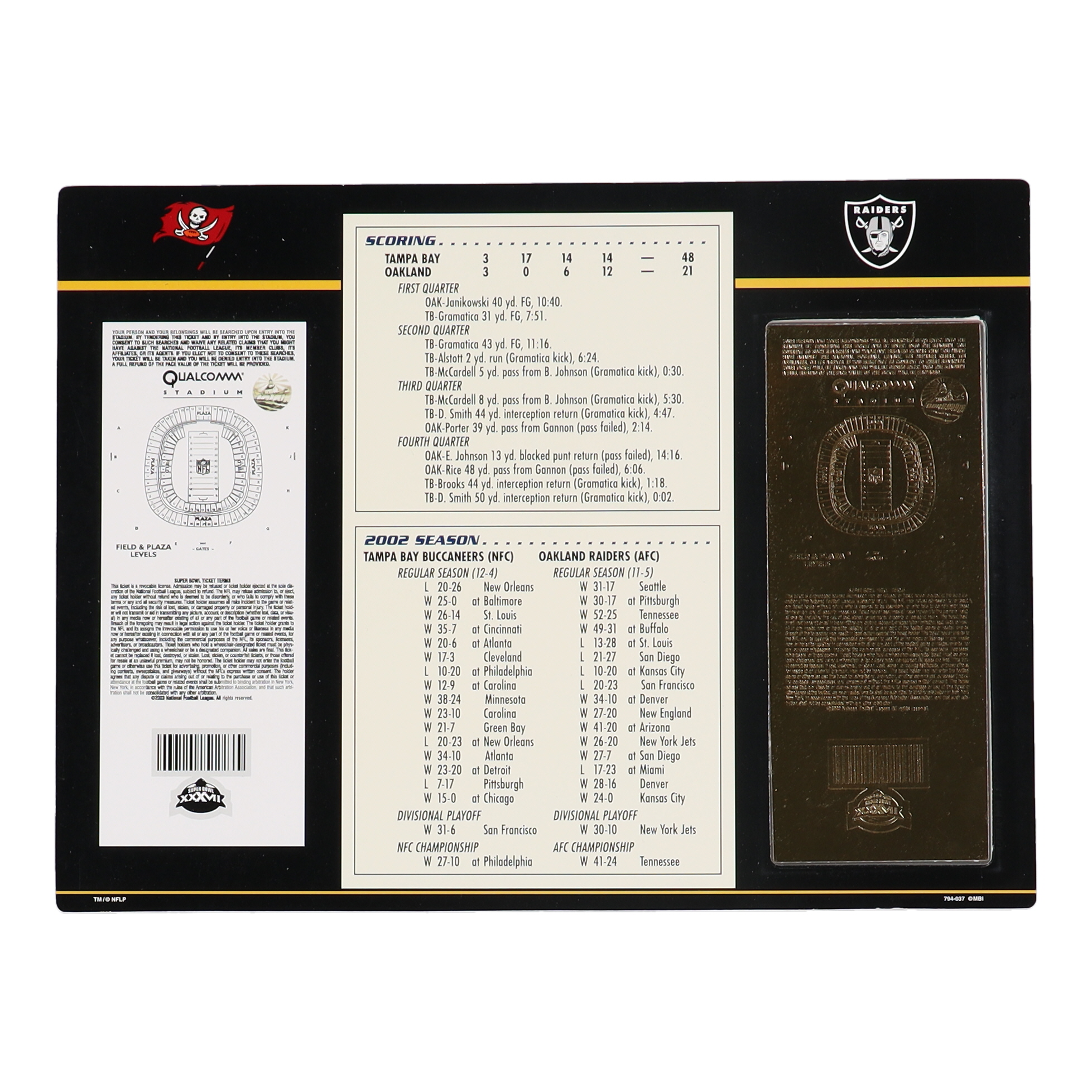 2003 Commemorative Super Bowl XXXVII Card with Commemorative 23 Karat Gold Ticket: Tampa Bay Buccaneers Super Bowl Champions