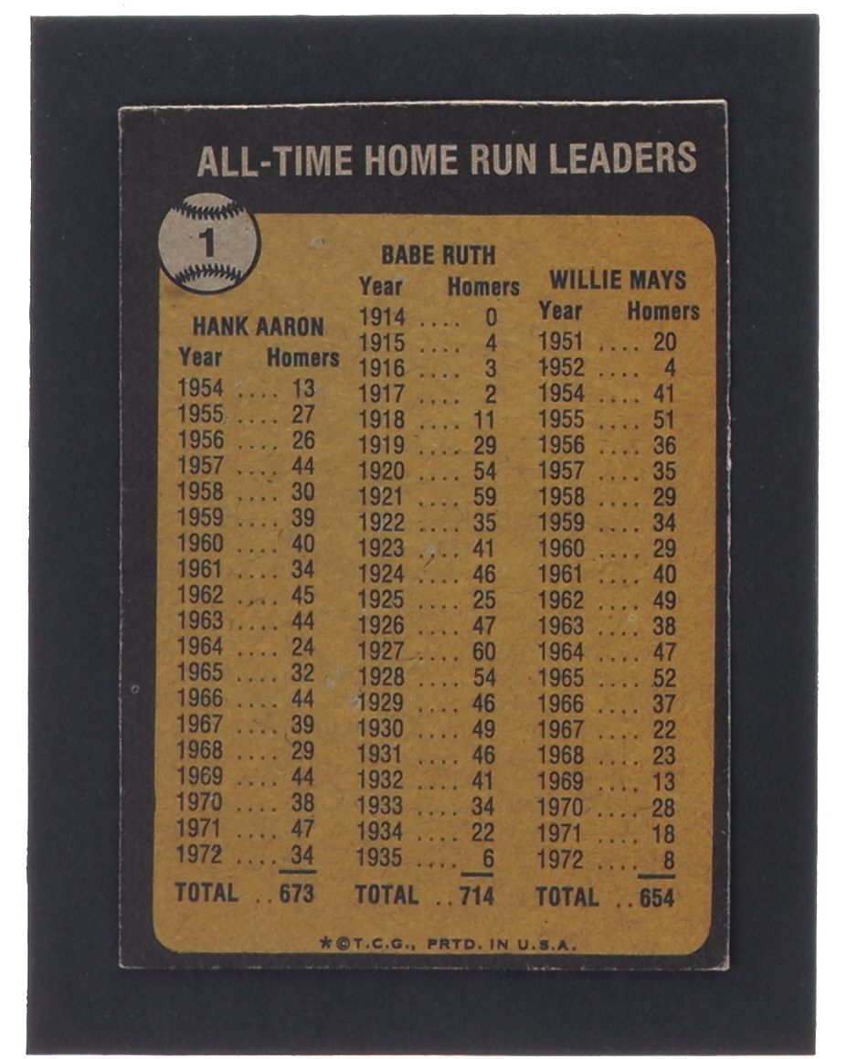 Babe Ruth / Hank Aaron / Willie Mays 1973 Topps #1 / All-Time Home Run Leaders
