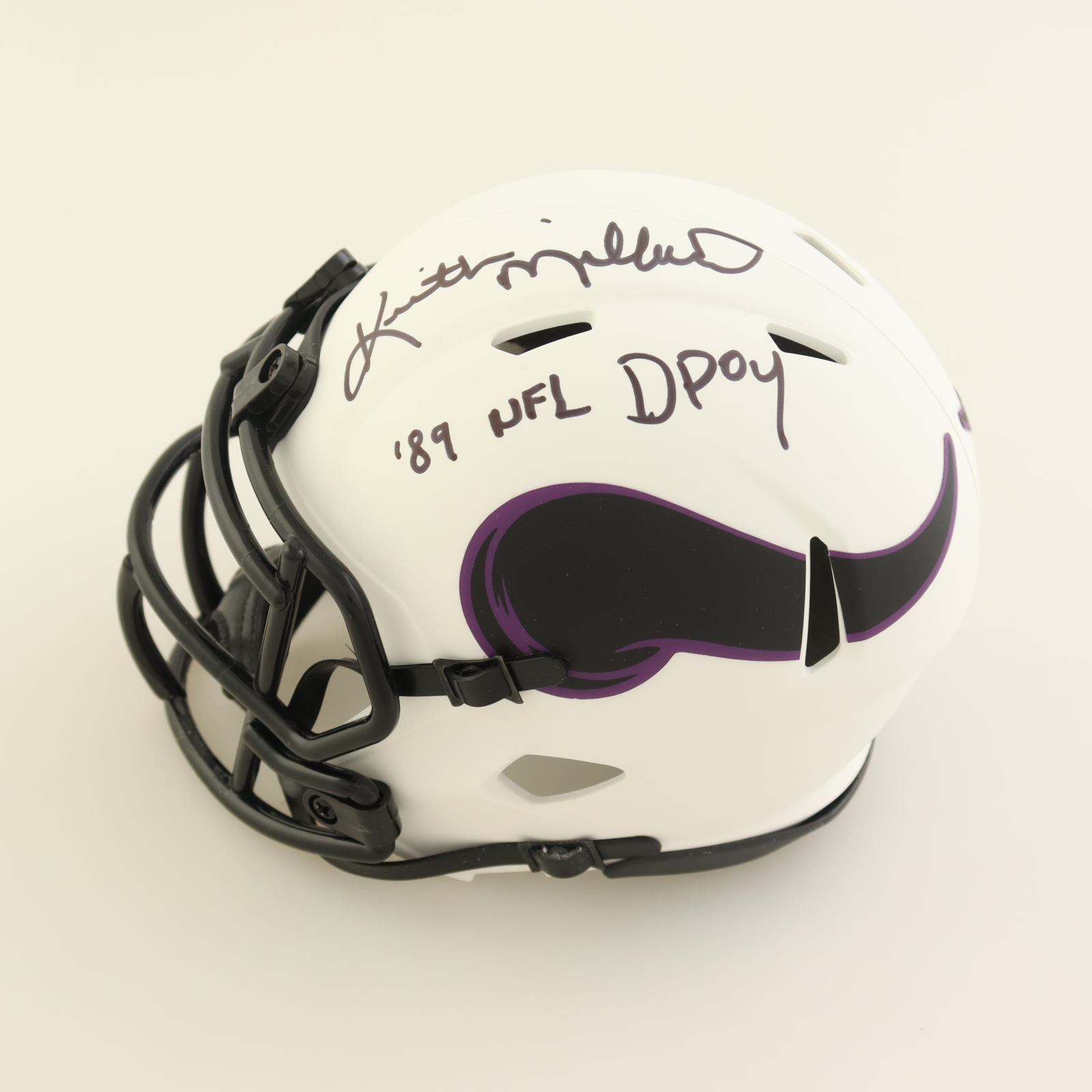 Riddell Minnesota Vikings Lunar Eclipse Alternate Speed mini helmet. Hand-signed and inscribed by Keith Millard.