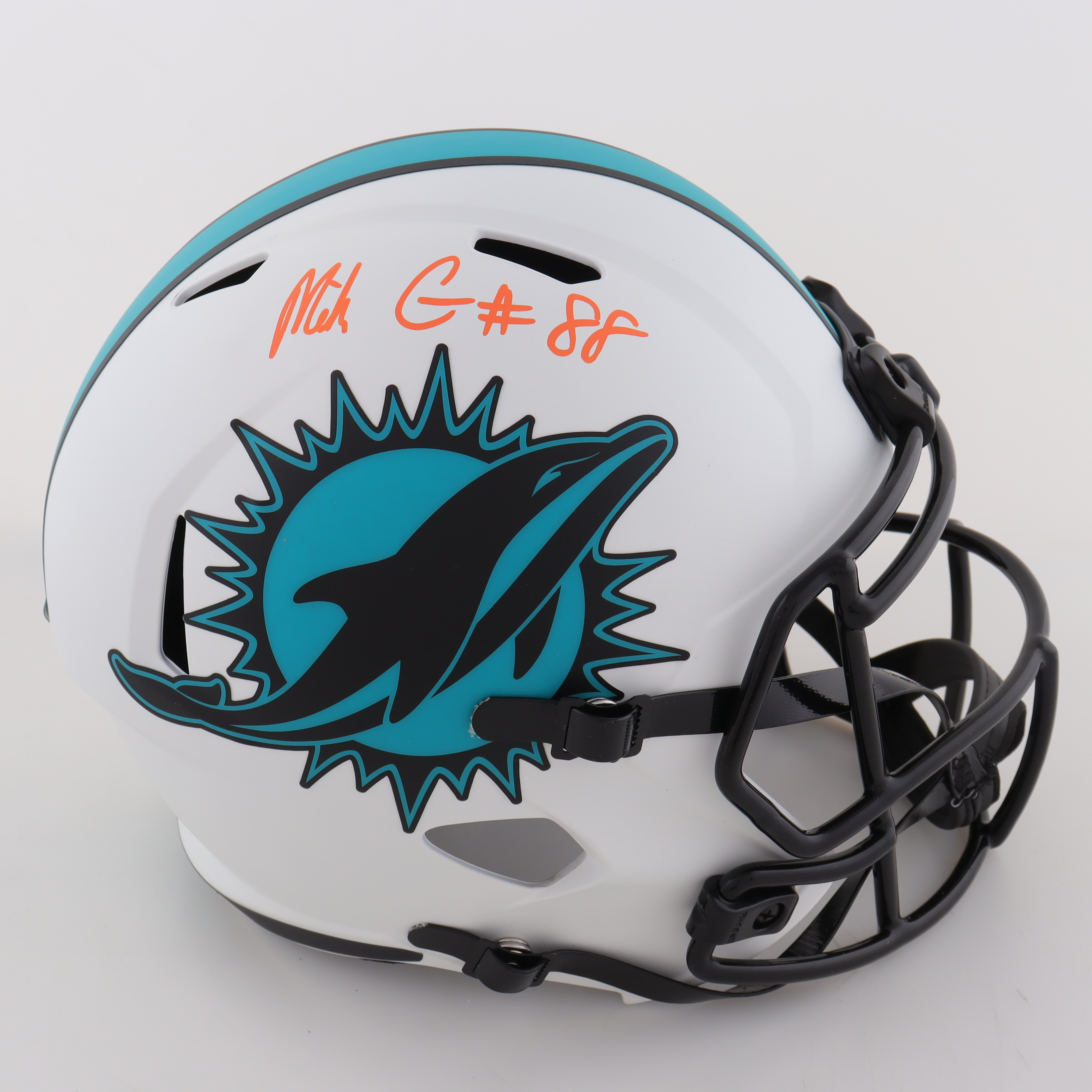 Riddell Miami Dolphins full-size replica Lunar Eclipse Alternate speed helmet. Hand-signed by Mike Gesicki.