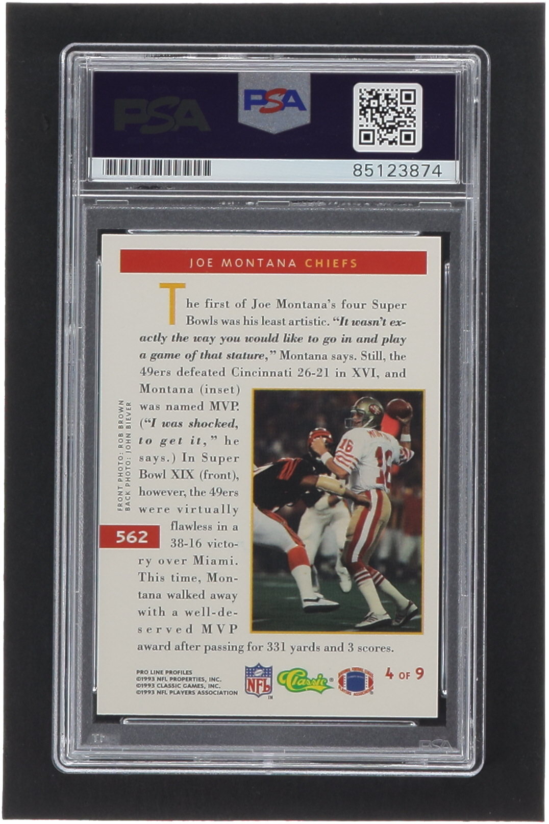 Joe Montana Signed 1993 Pro Line Profiles #562 (PSA)