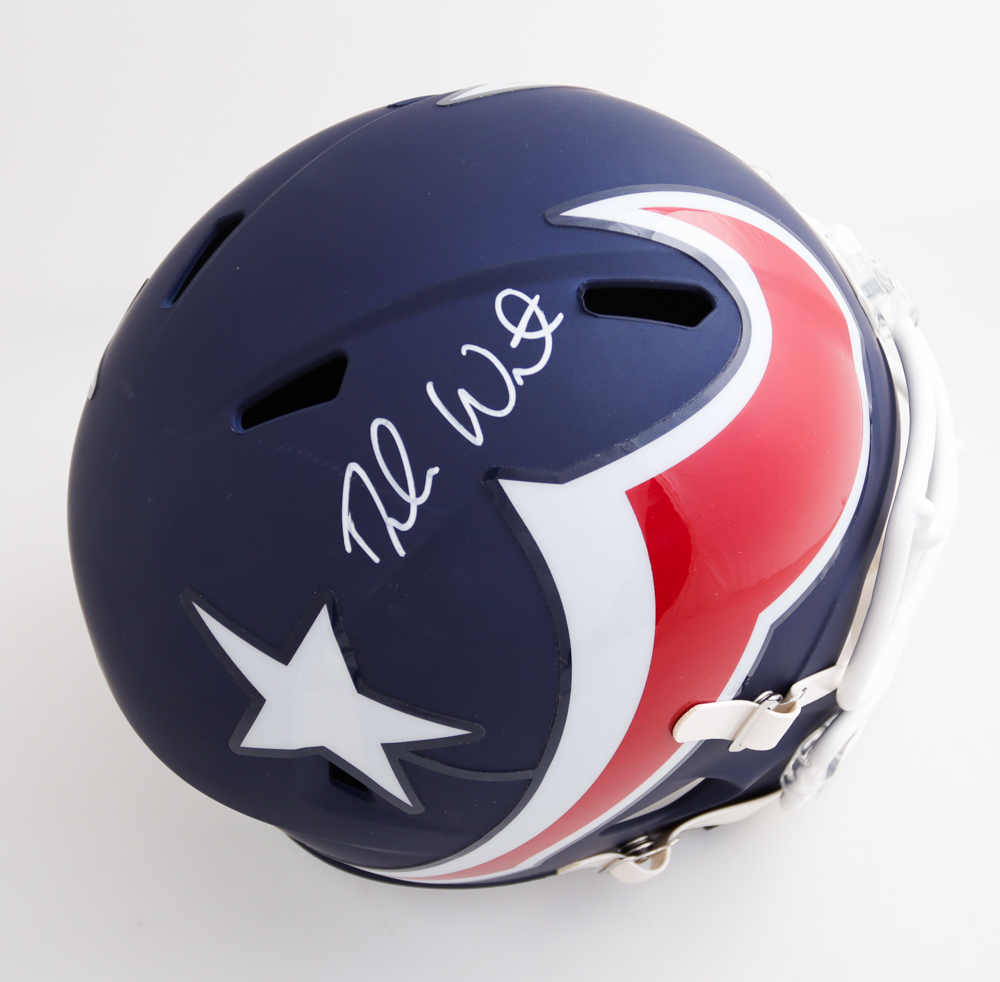 Riddell Houston Texans full-size replica Amp Alternate Speed helmet. Hand-signed by Deshaun Watson.