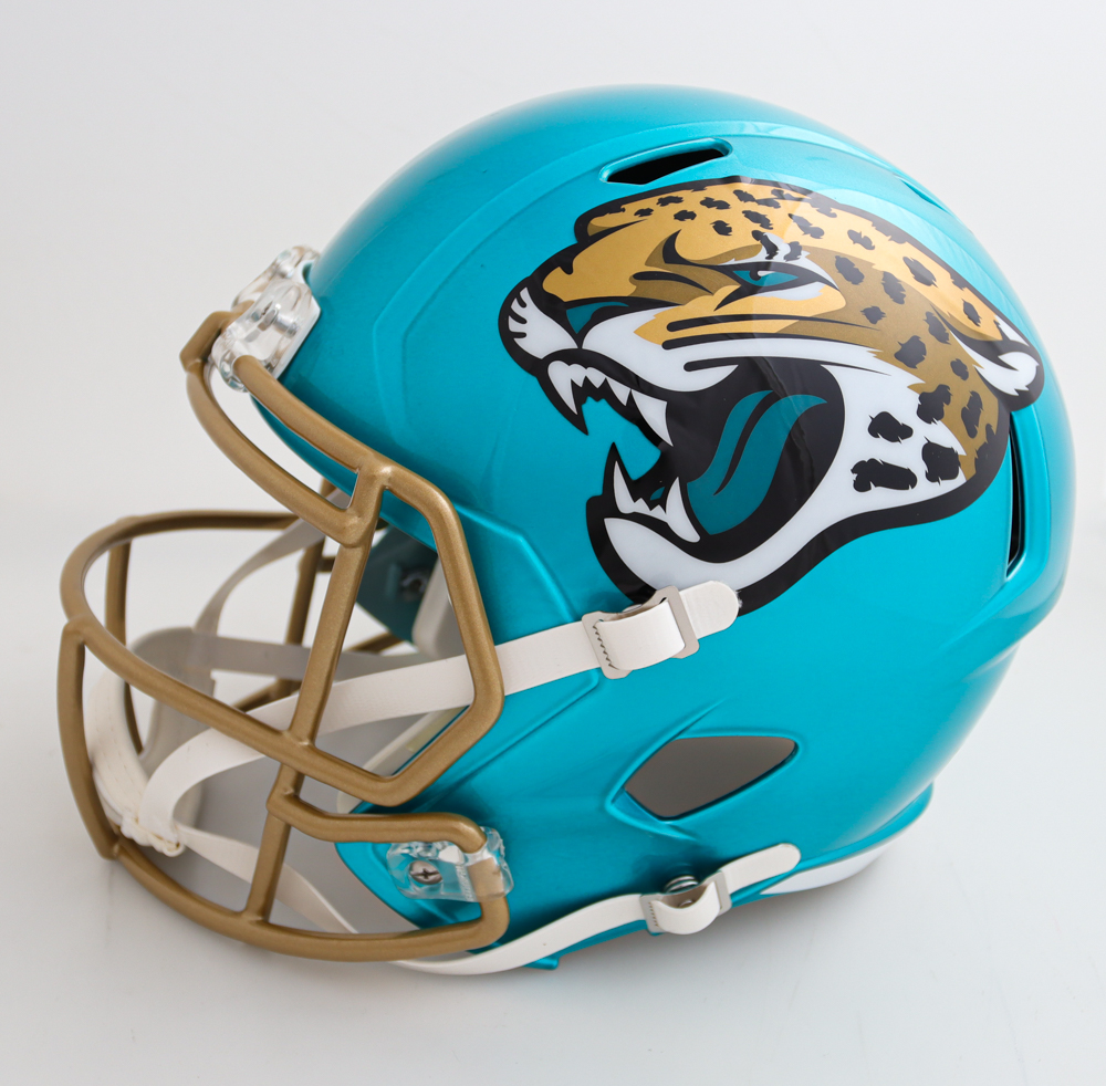 Riddell Jacksonville Jaguars Full-Size Replica Flash Alternate speed helmet. Hand-signed by Fred Taylor.
