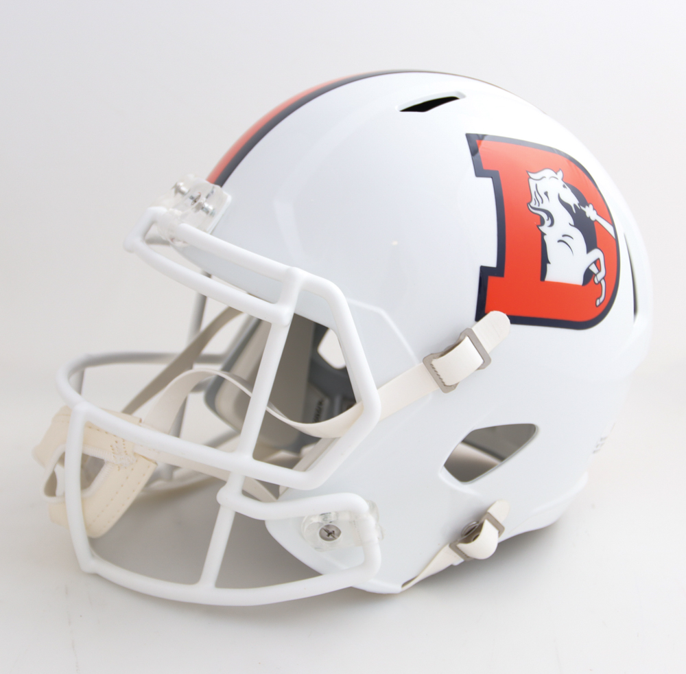 Riddell Denver Broncos full-size replica Alternate speed helmet. Has been hand-signed by Tim Tebow.