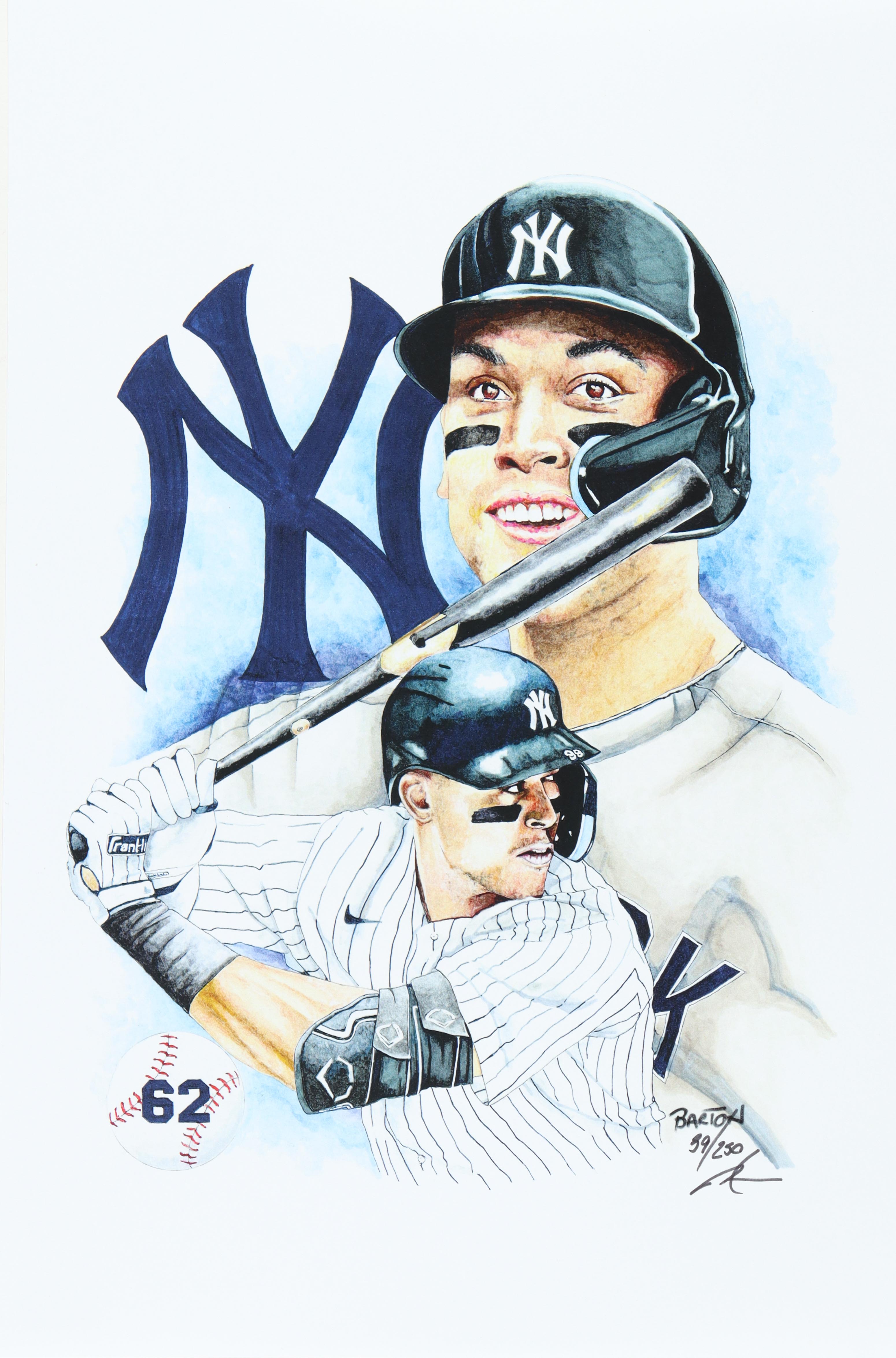 Print measures approximately 12" x 18" in size. The piece is hand-signed and numbered by the artist, Brian Barton and features Aaron Judge (New York Yankees).