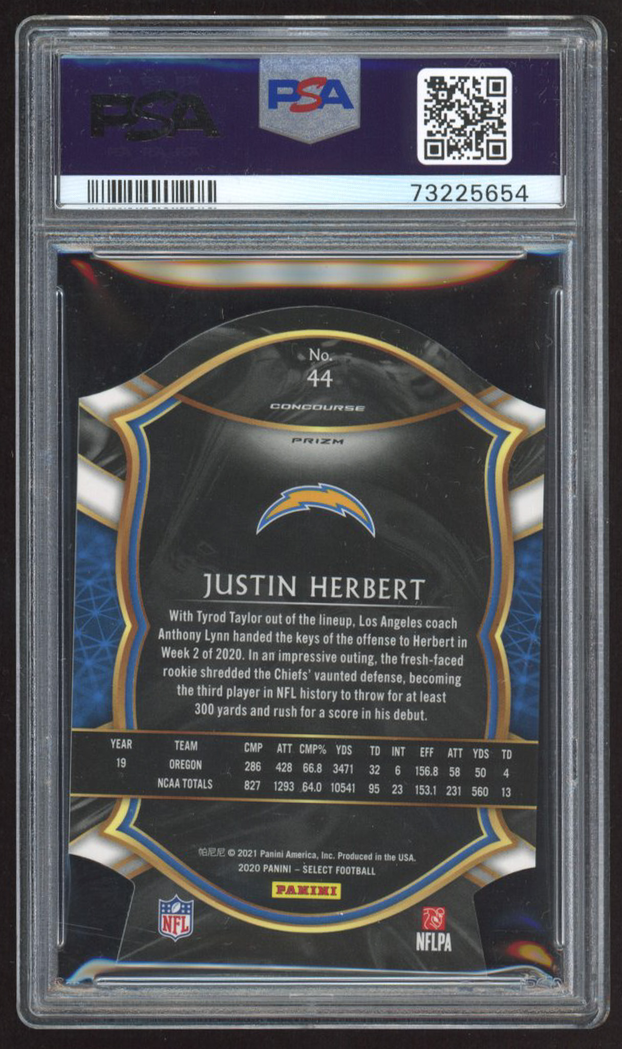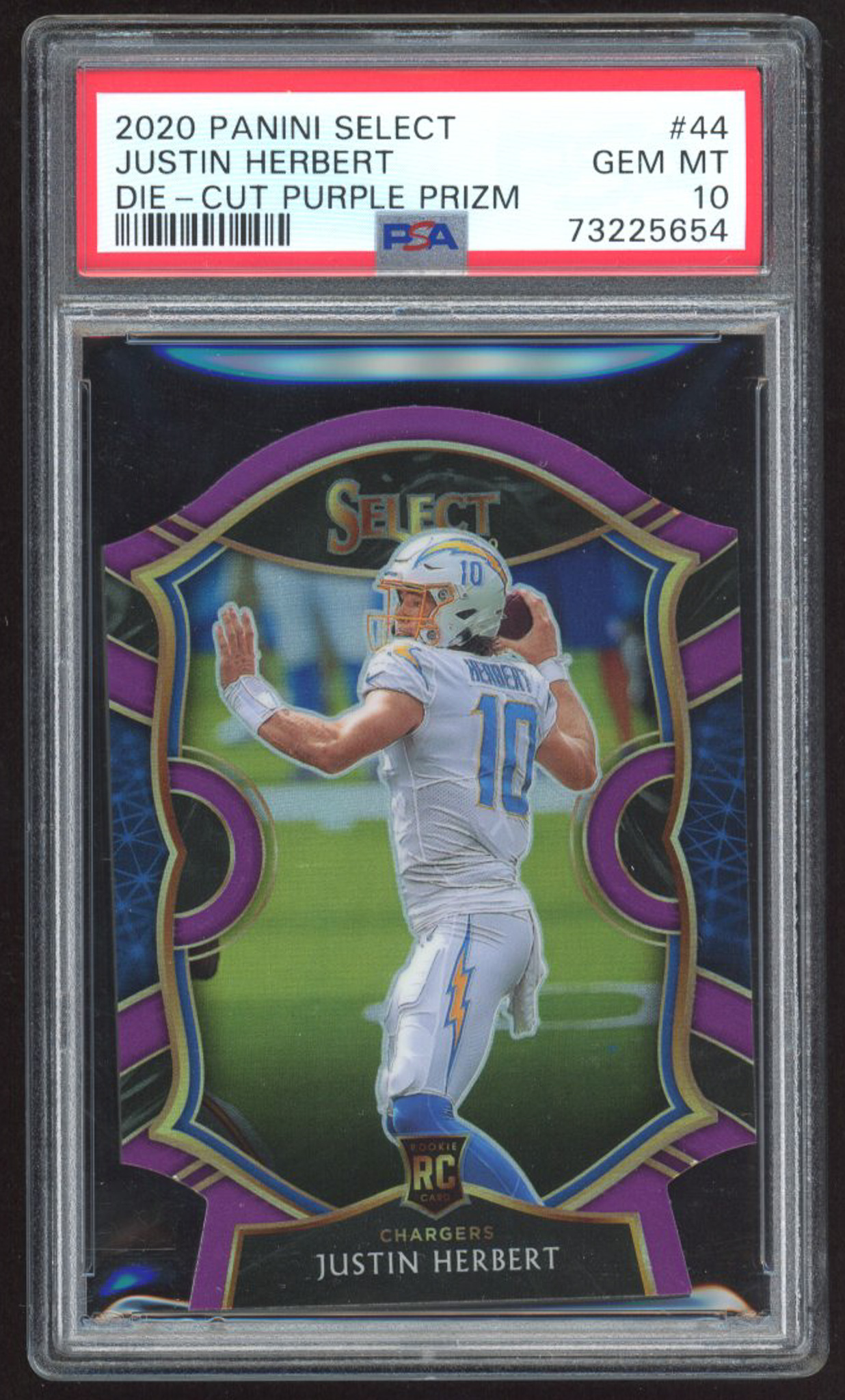 Justin Herbert 2020 Select Prizm Purple Die Cut #44 RC (PSA 10)