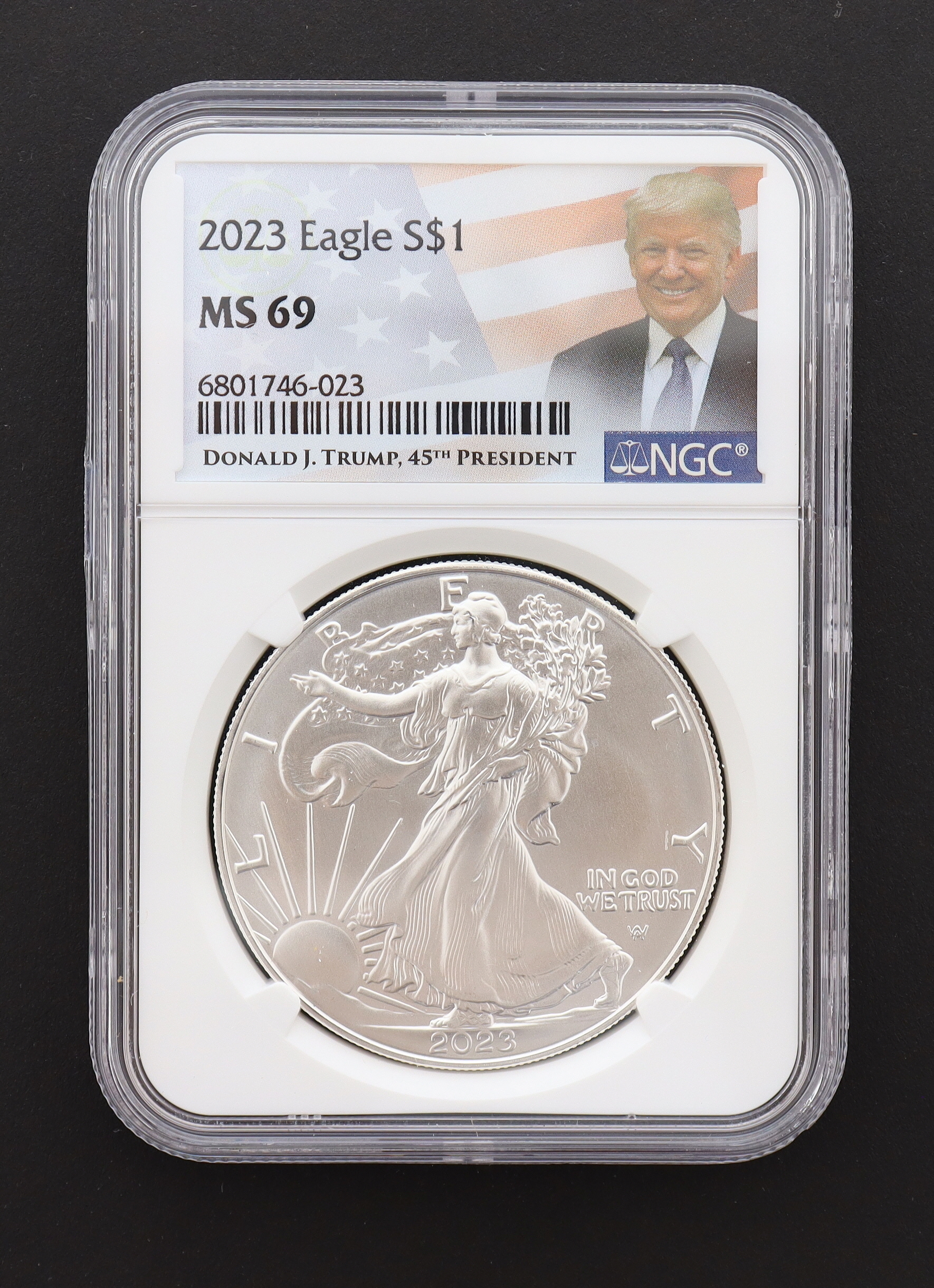 2023 American Silver Eagle - Donald Trump 45th President Label (NGC MS69)