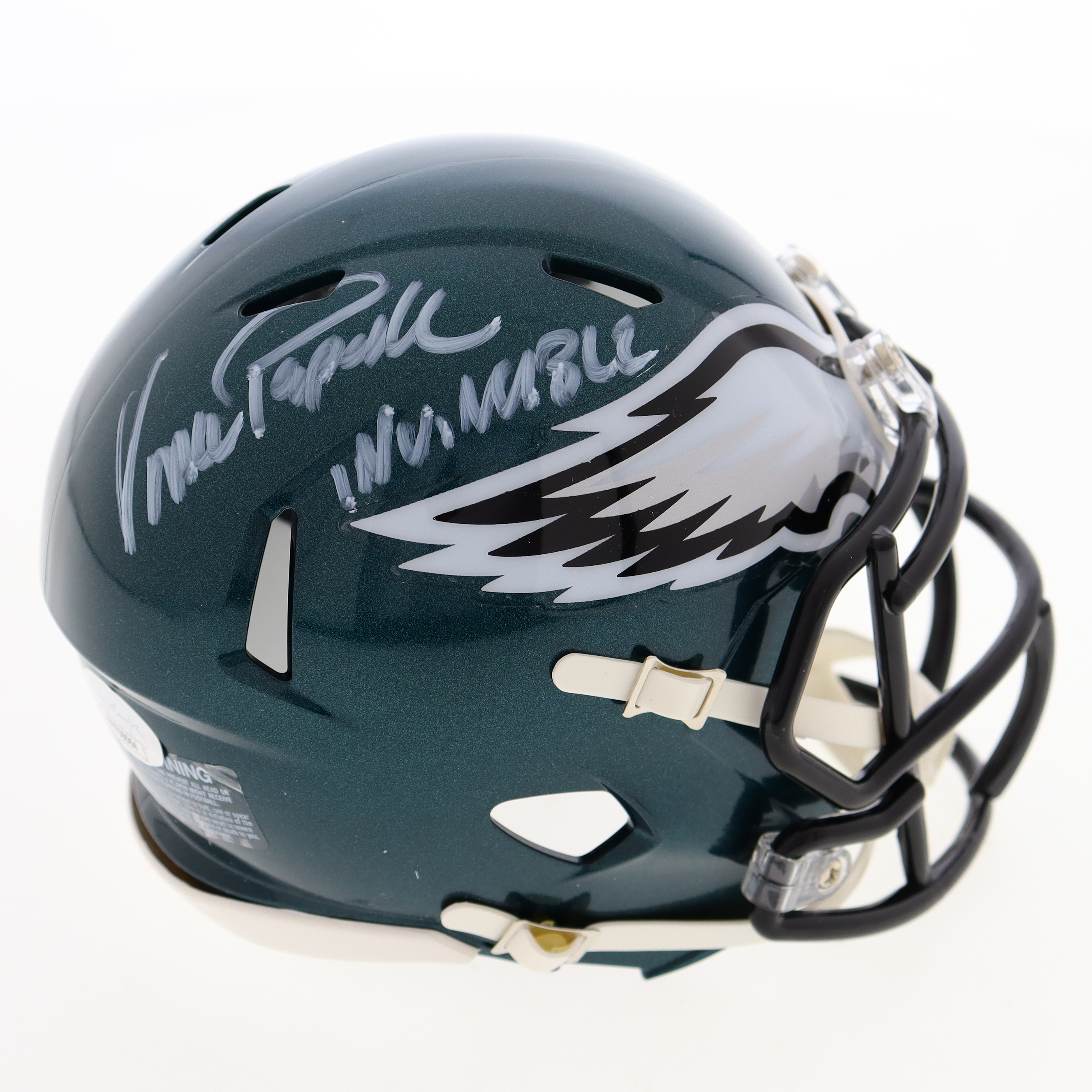 Vince Papale Signed Eagles Speed Mini Helmet Inscribed "Invincible" (JSA)