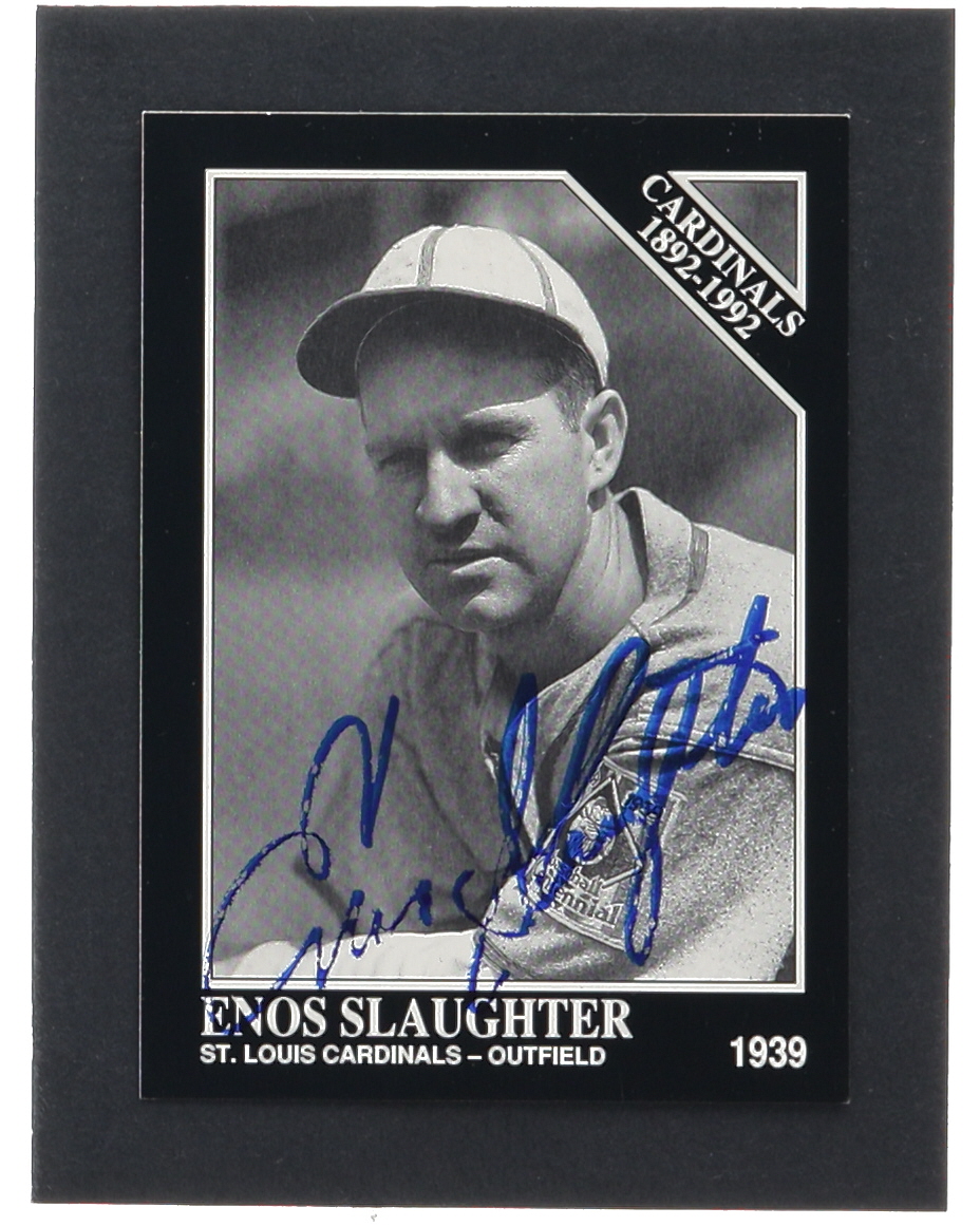 Card has been hand-signed by Enos Slaughter (D. 2002, St. Louis Cardinals, HOF). Please see photos for details regarding the condition of the card.