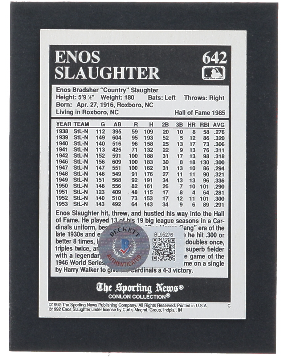 Enos Slaughter Signed 1992 Conlon TSN #642 (Beckett)