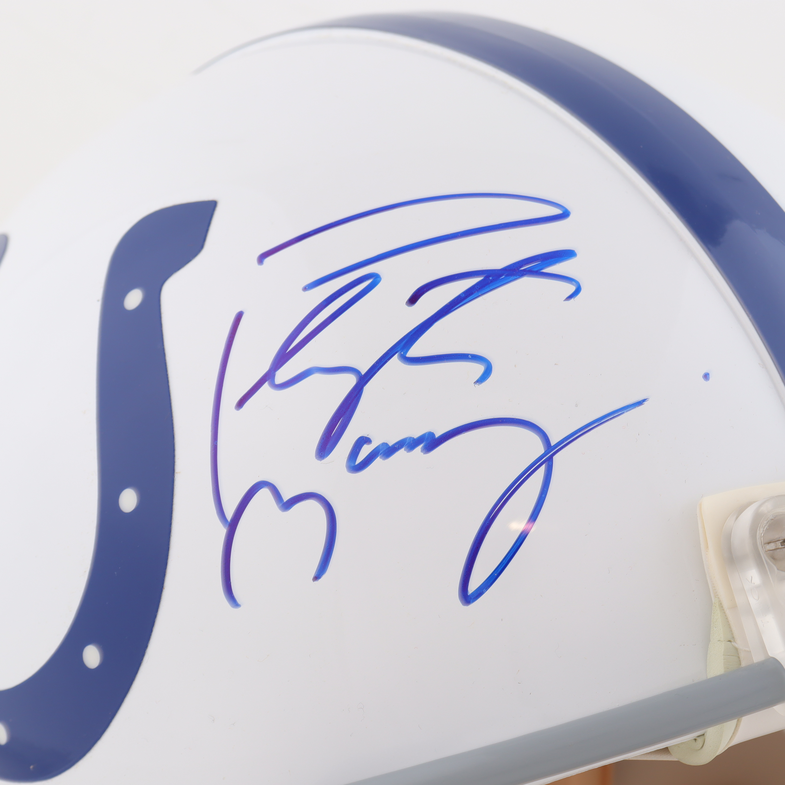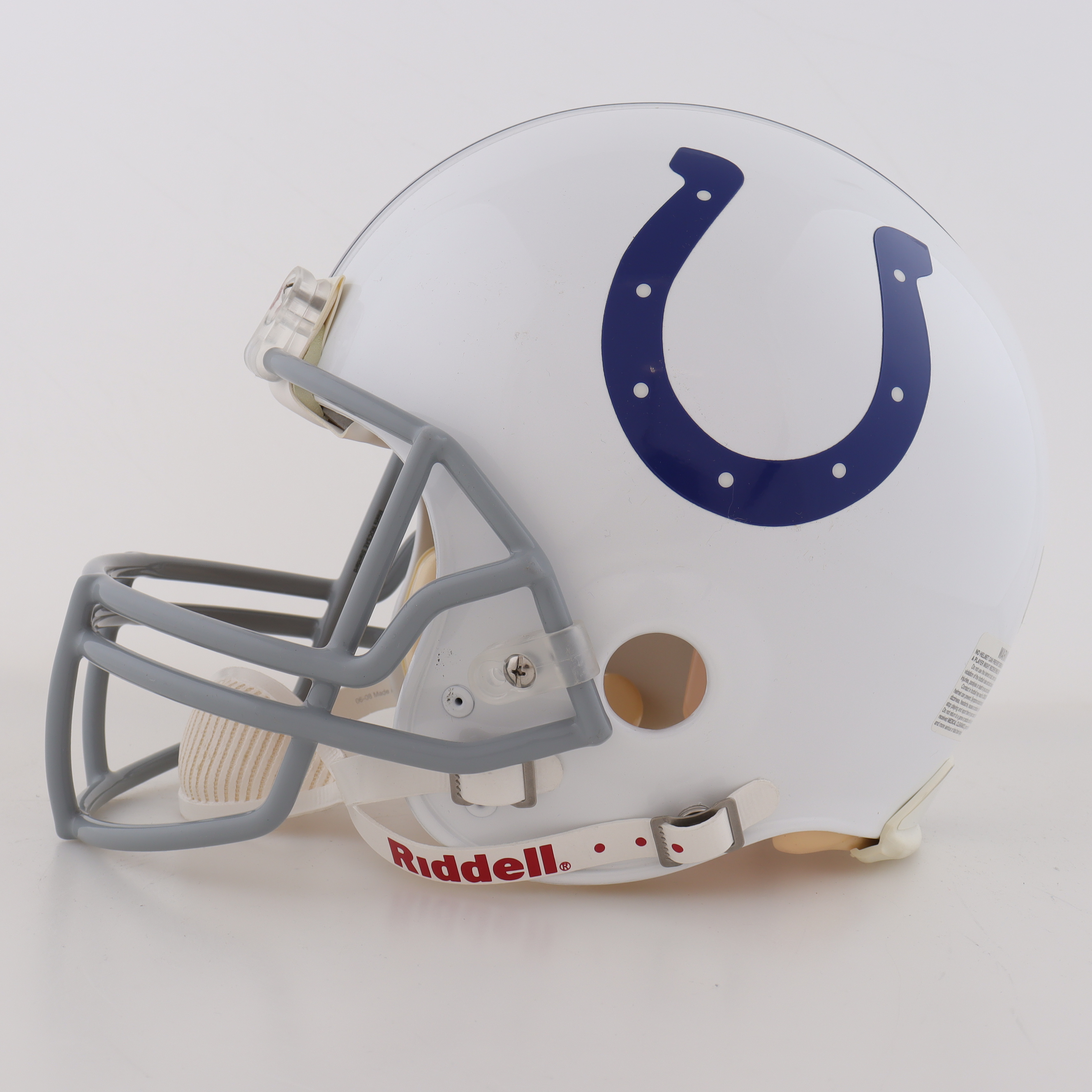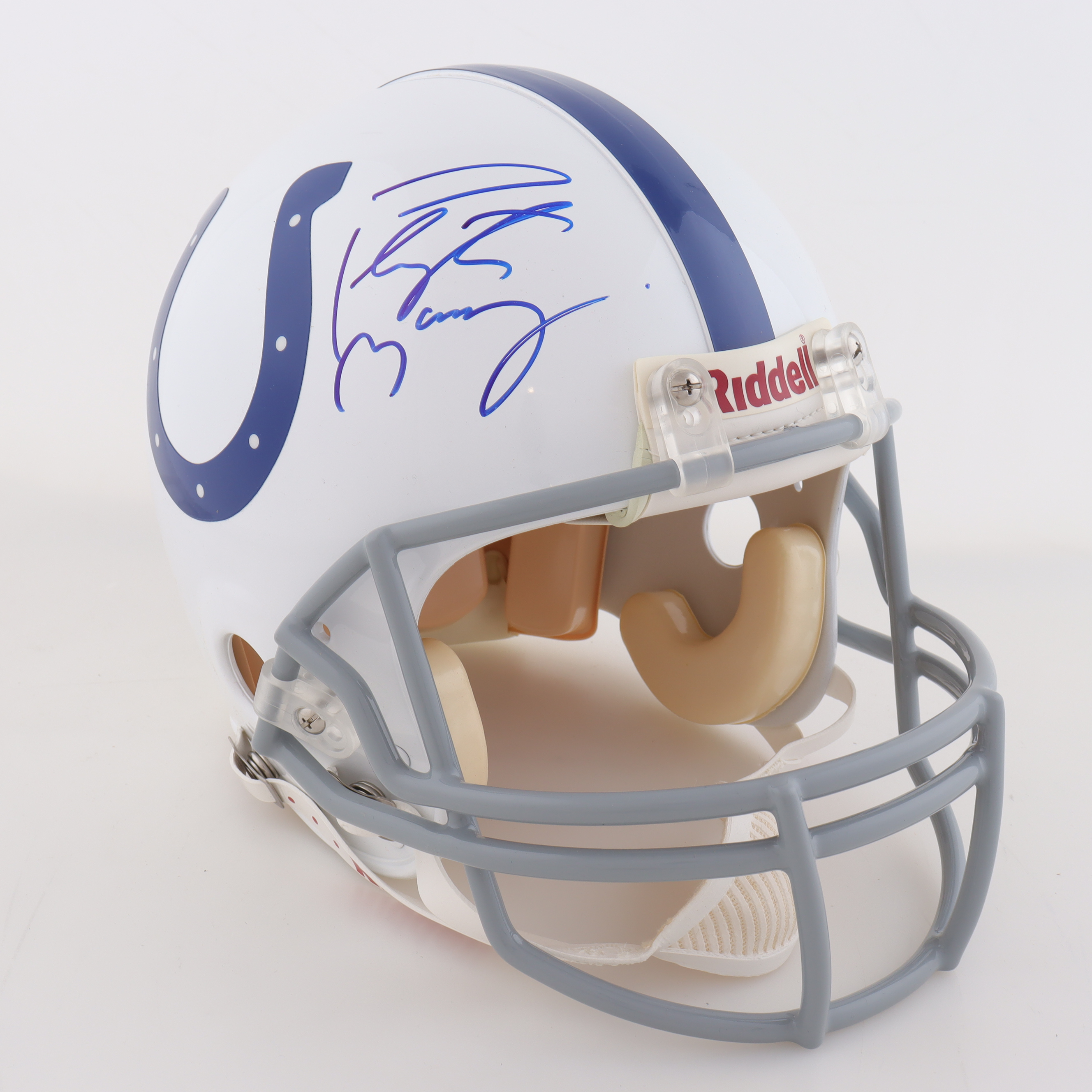 Riddell Indianapolis Colts full-size authentic throwback helmet. Has been hand-signed by Peyton Manning (HOF).