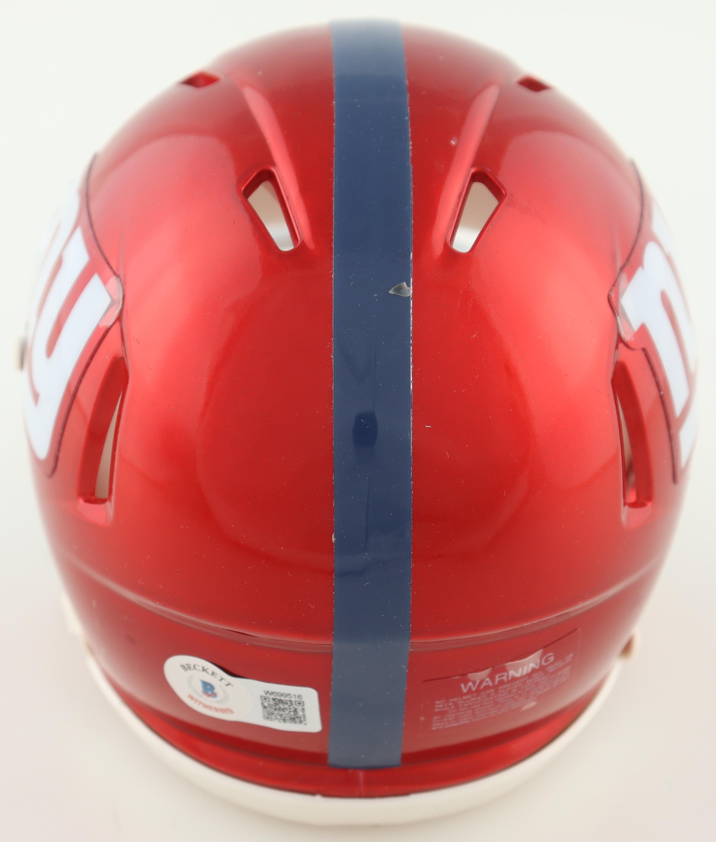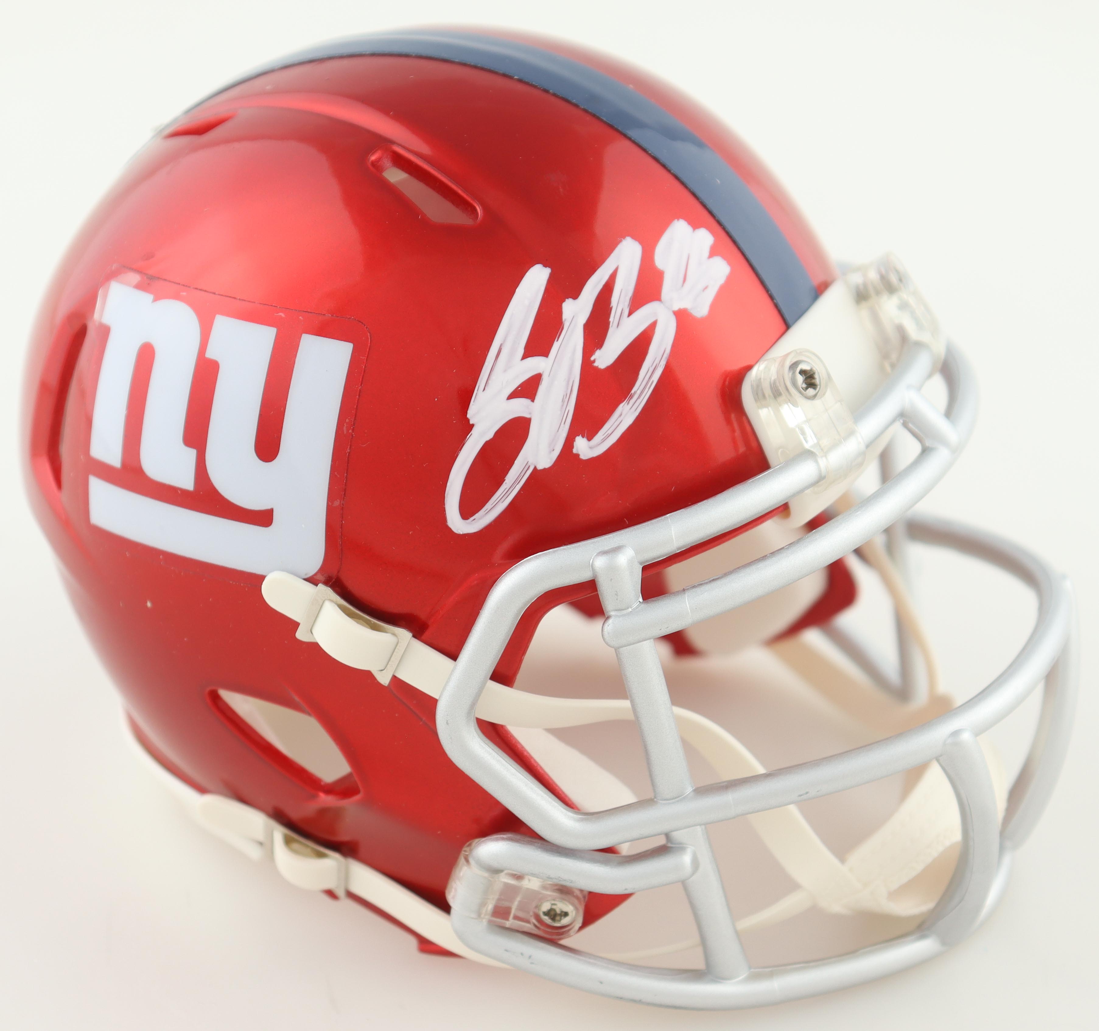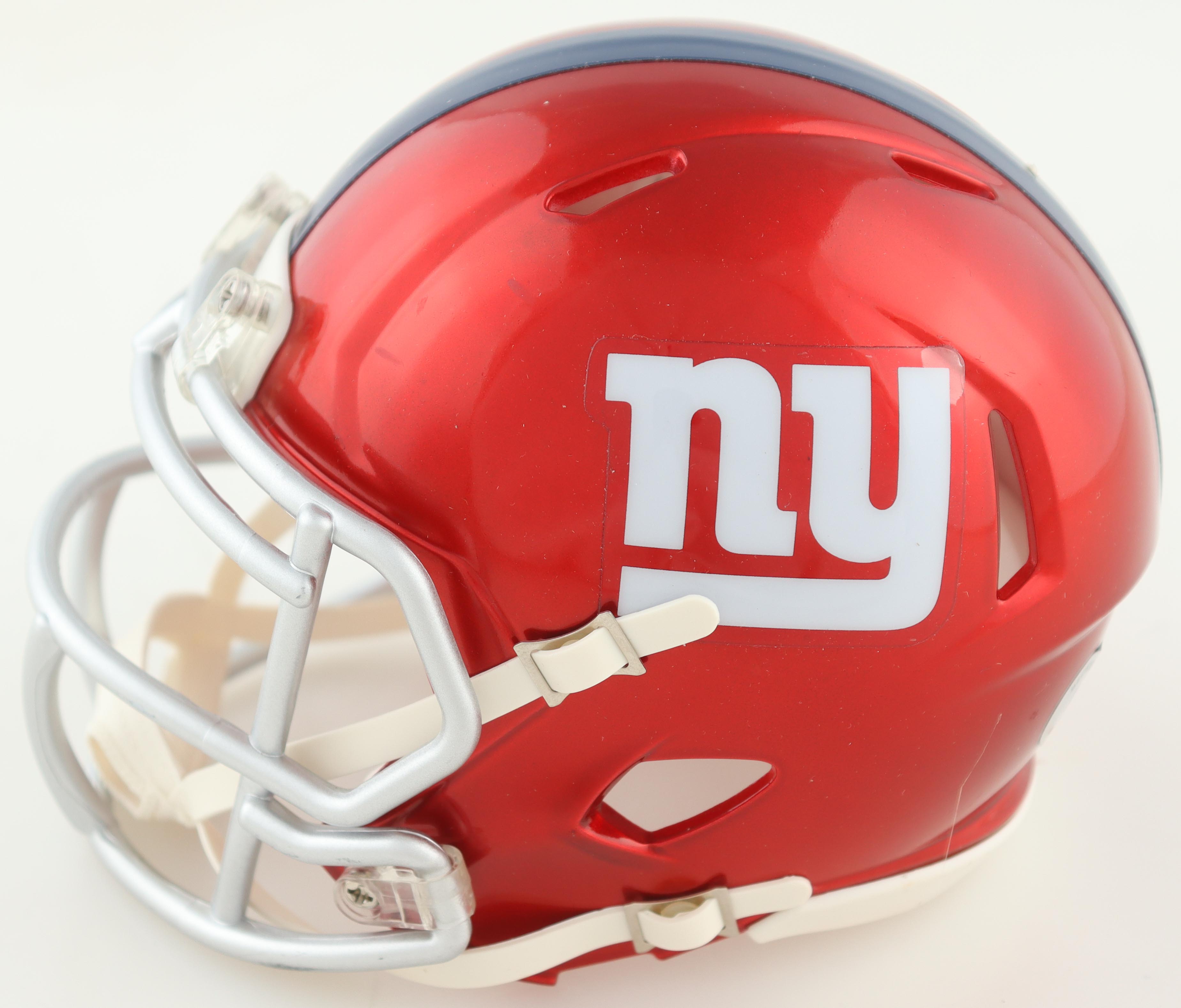 Riddell New York Giants Flash Alternate Speed mini helmet. Hand-signed by Saquon Barkley.