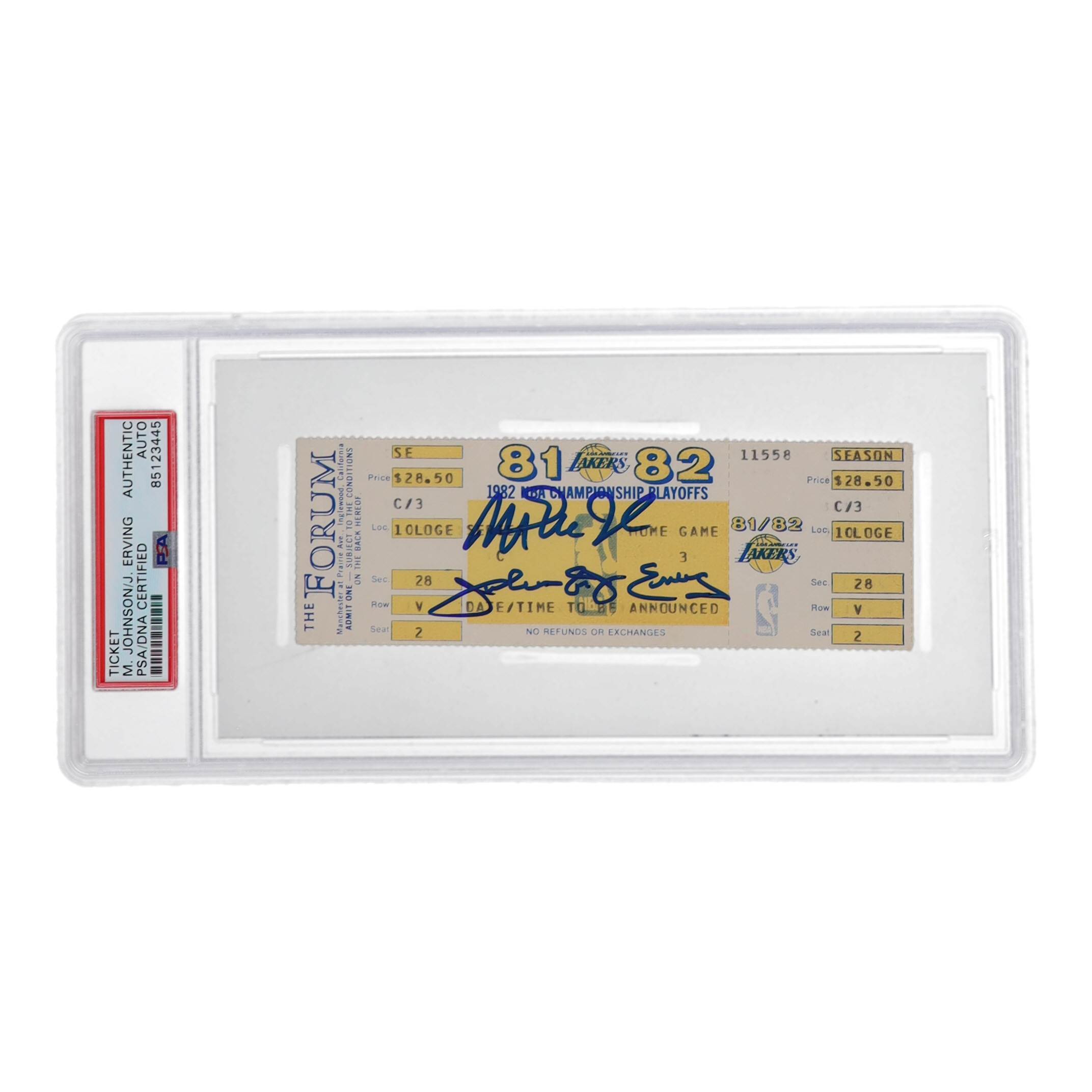 Magic Johnson & Julius Erving Signed 1982 NBA Championship Playoffs Ticket (PSA)