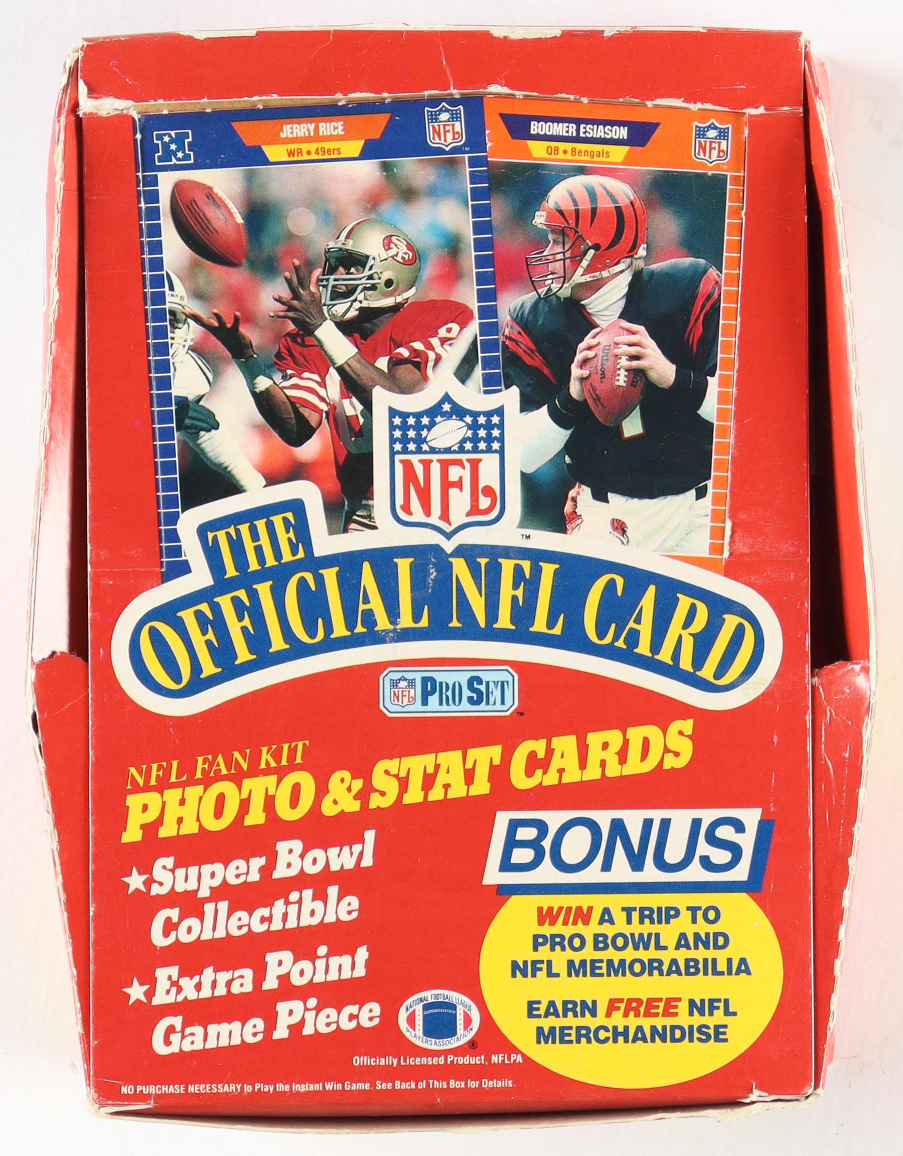 Pro Set entered the football card market with a three series offering for 1989. A first series consisted of 440 cards followed by a 100-card second series offering. A Final Update set consisted of 21 cards for a total of 561 standard-size full-color cards. The backs are horizontal with a small photo, statistics and highlights. The first series is ordered numerically by teams and alphabetically within teams. Rookie Cards include Michael Irvin, Tim Brown, Cris Carter, Thurman Thomas, Rod Woodson, and More!!!