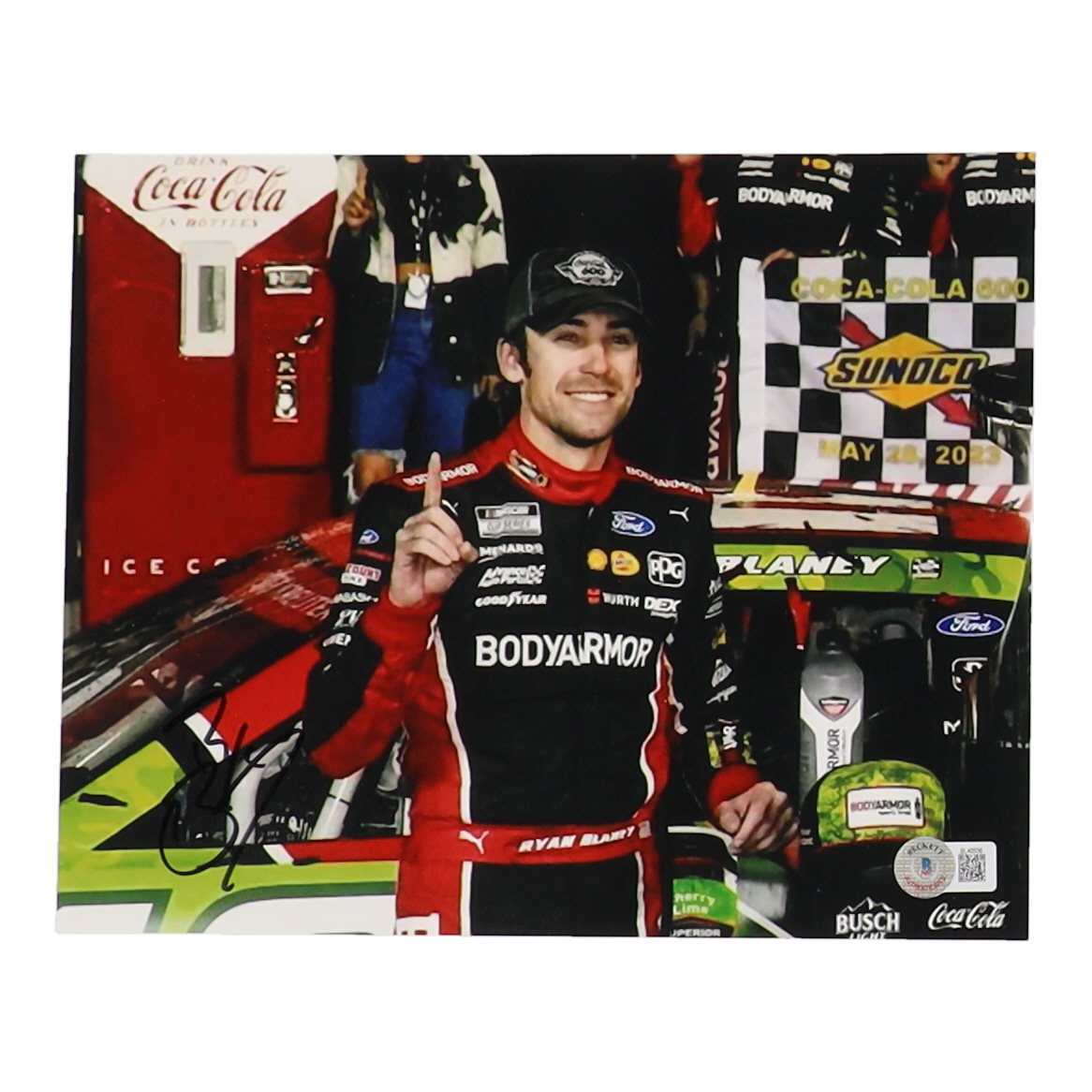 Photo measures 8" x 10" in size and has been hand-signed by Ryan Blaney.