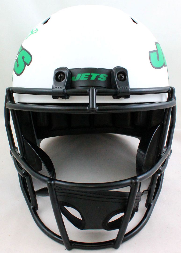 Riddell New York Jets full-size replica lunar eclipse alternate speed helmet. Hand-signed by Elijah Moore.