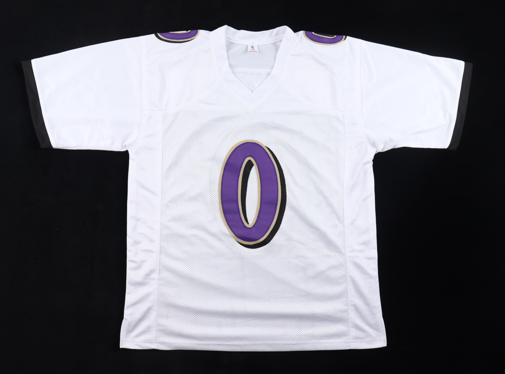 Custom football jersey. Everything sewn on, size XL. Hand-signed by Roquan Smith.