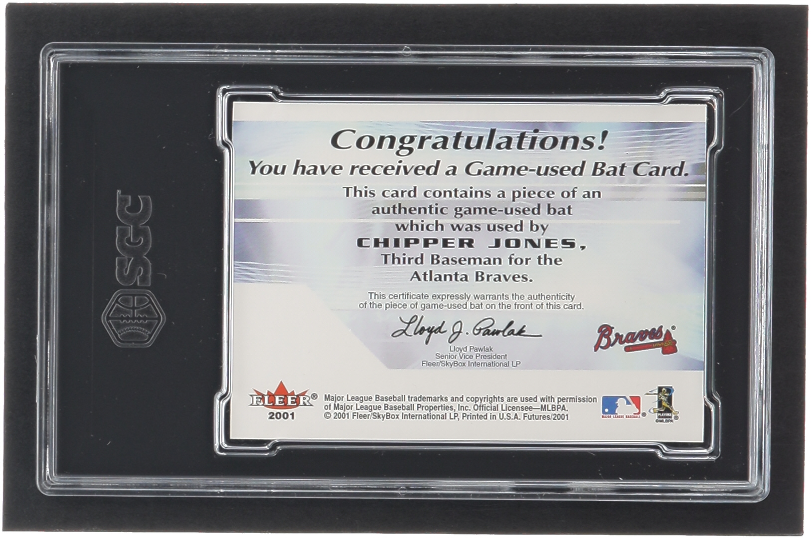Chipper Jones 2001 Fleer Futures Bats to the Future Game Bat #11 (SGC 9)
