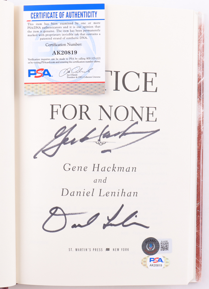 Gene Hackman & Daniel Lenihan Signed "Justice For None" Hardcover Book (PSA & Beckett)