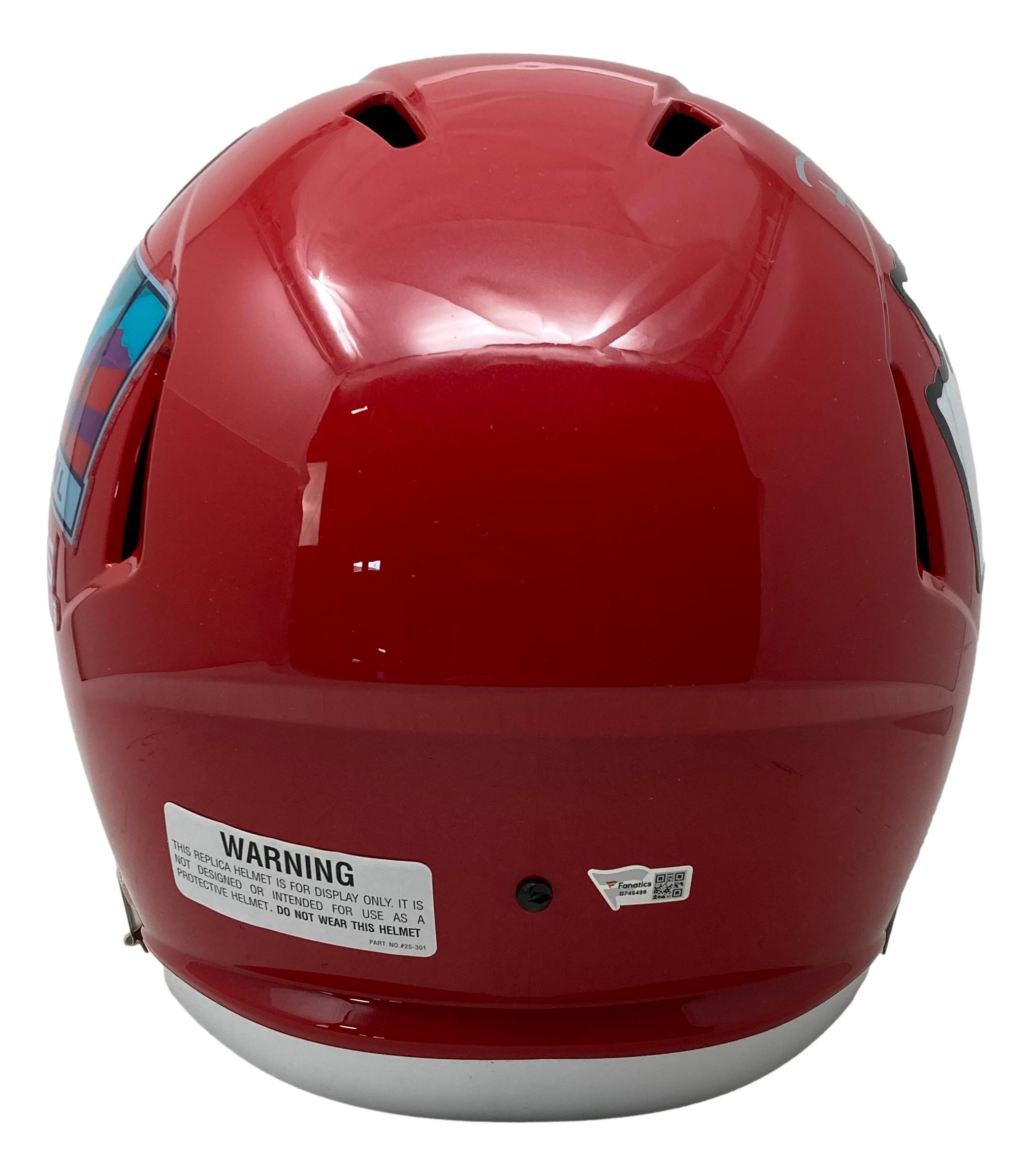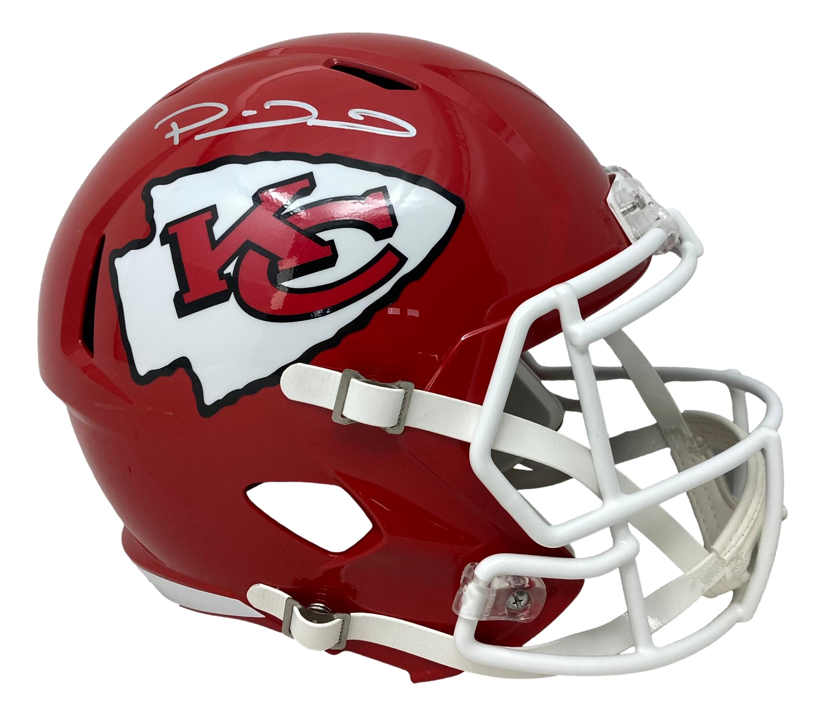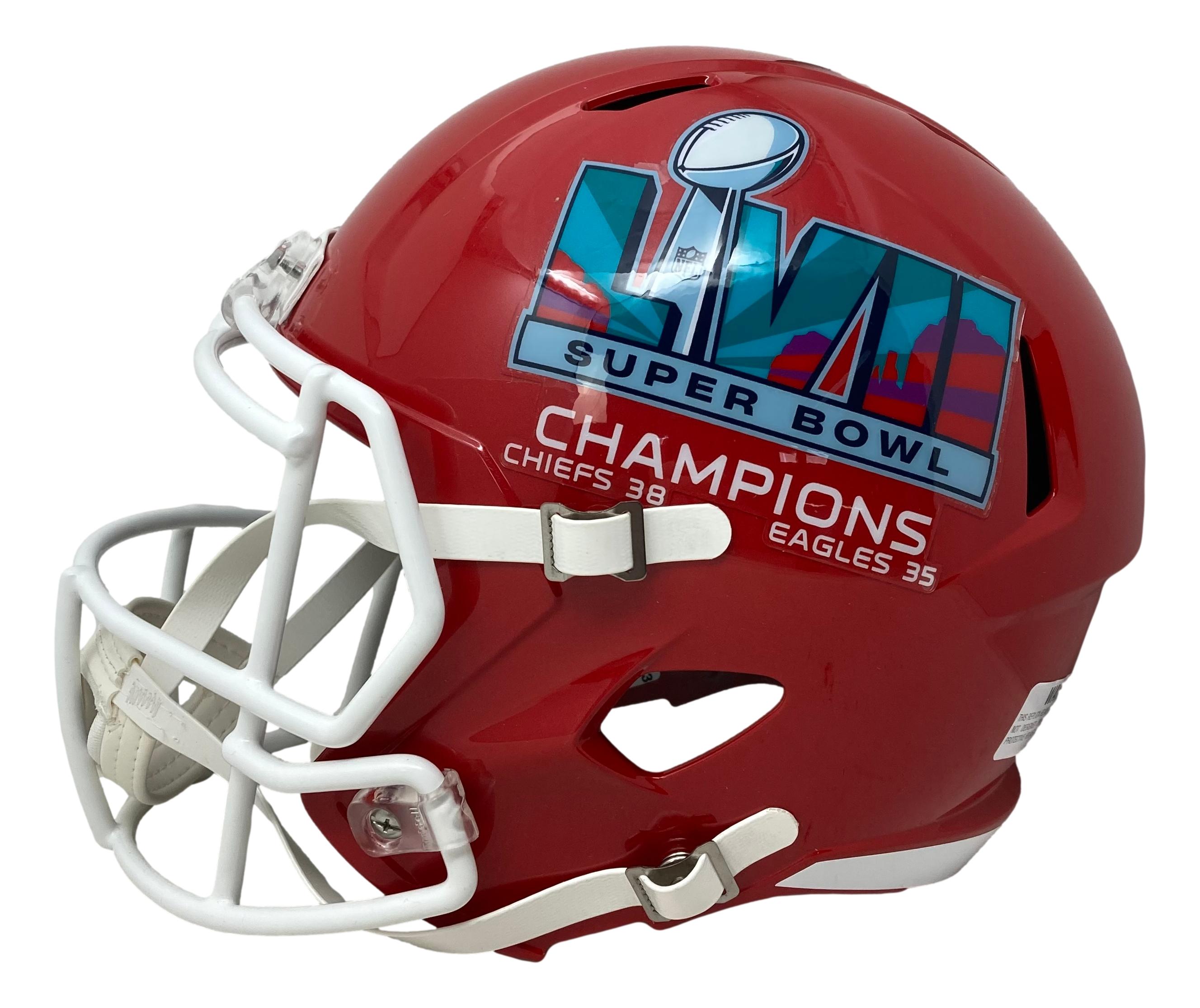 Riddell Kansas City Chiefs Super Bowl LVII champions logo full-size replica speed helmet. Has been hand-signed by Patrick Mahomes.