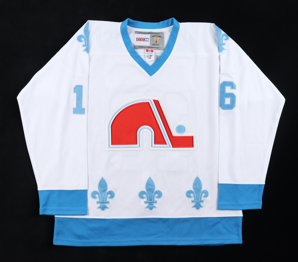 Custom jersey. Everything sewn on, Size 50. Hand-signed and inscribed by Michel Goulet (HOF). Please note, the signature and inscription have bled.