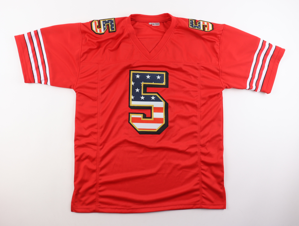 Custom jersey with everything sewn on, size XL. Hand-signed by Jeff Garcia.