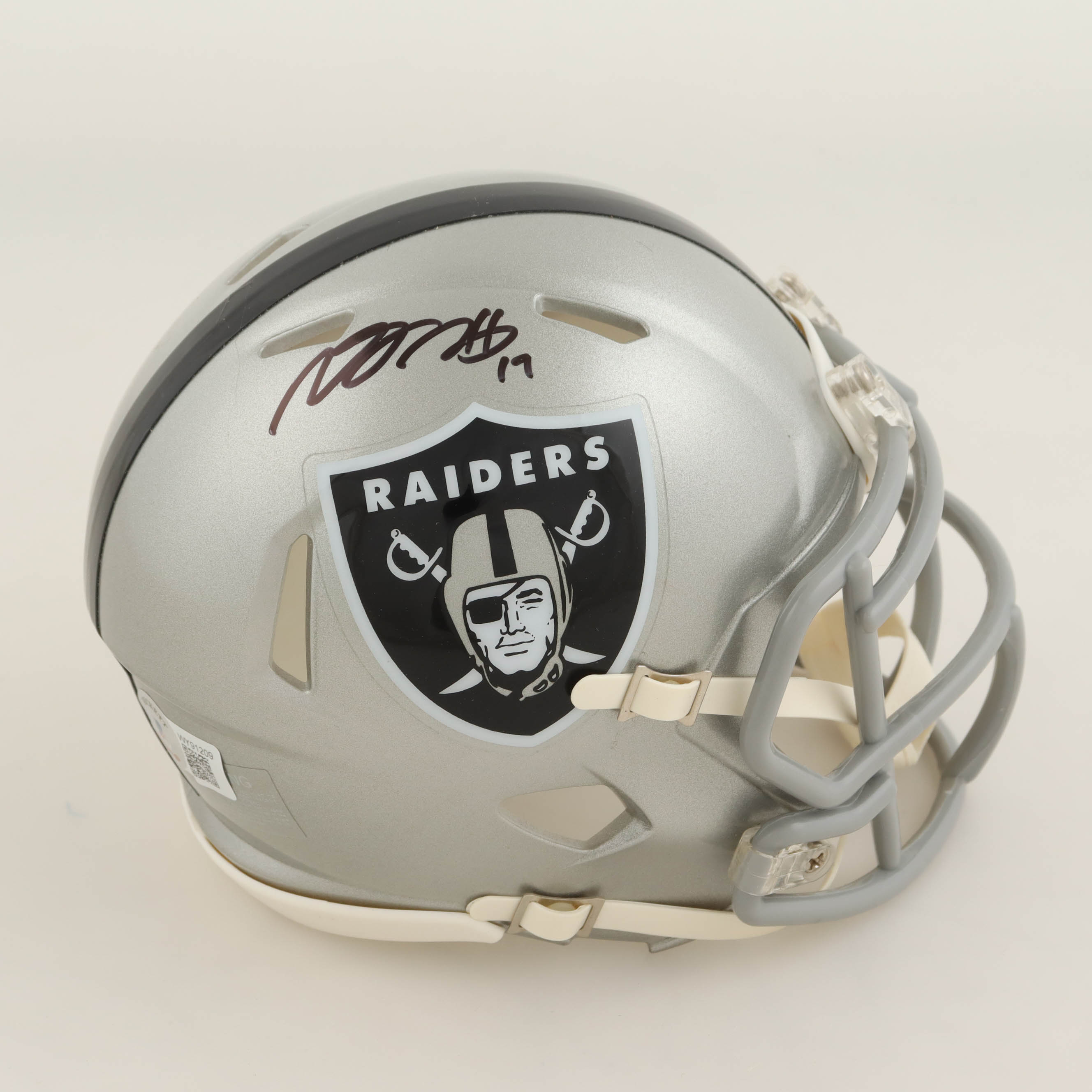 Riddell Las Vegas Raiders Flash Alternate Speed mini helmet. Hand-signed by Davante Adams.