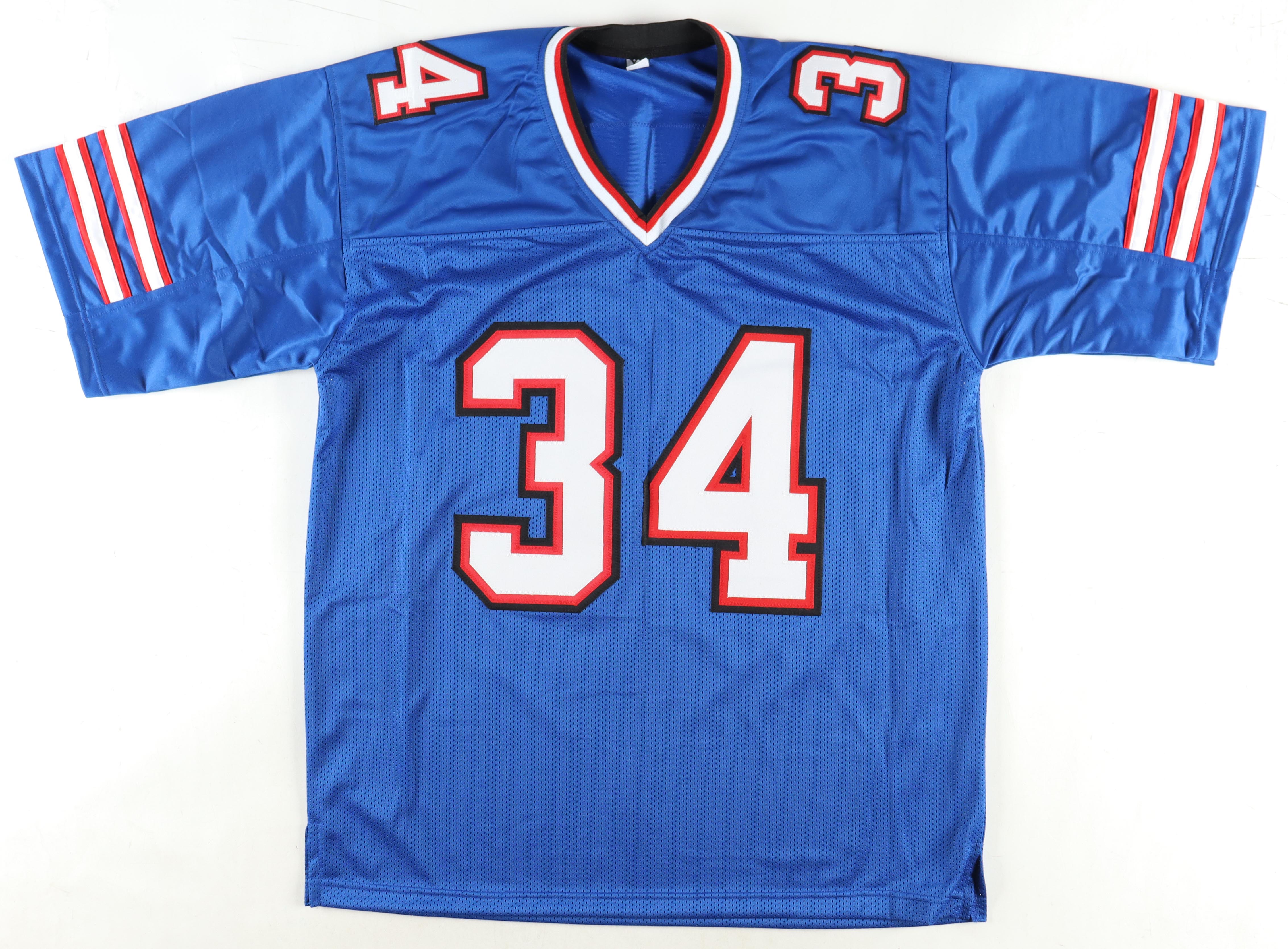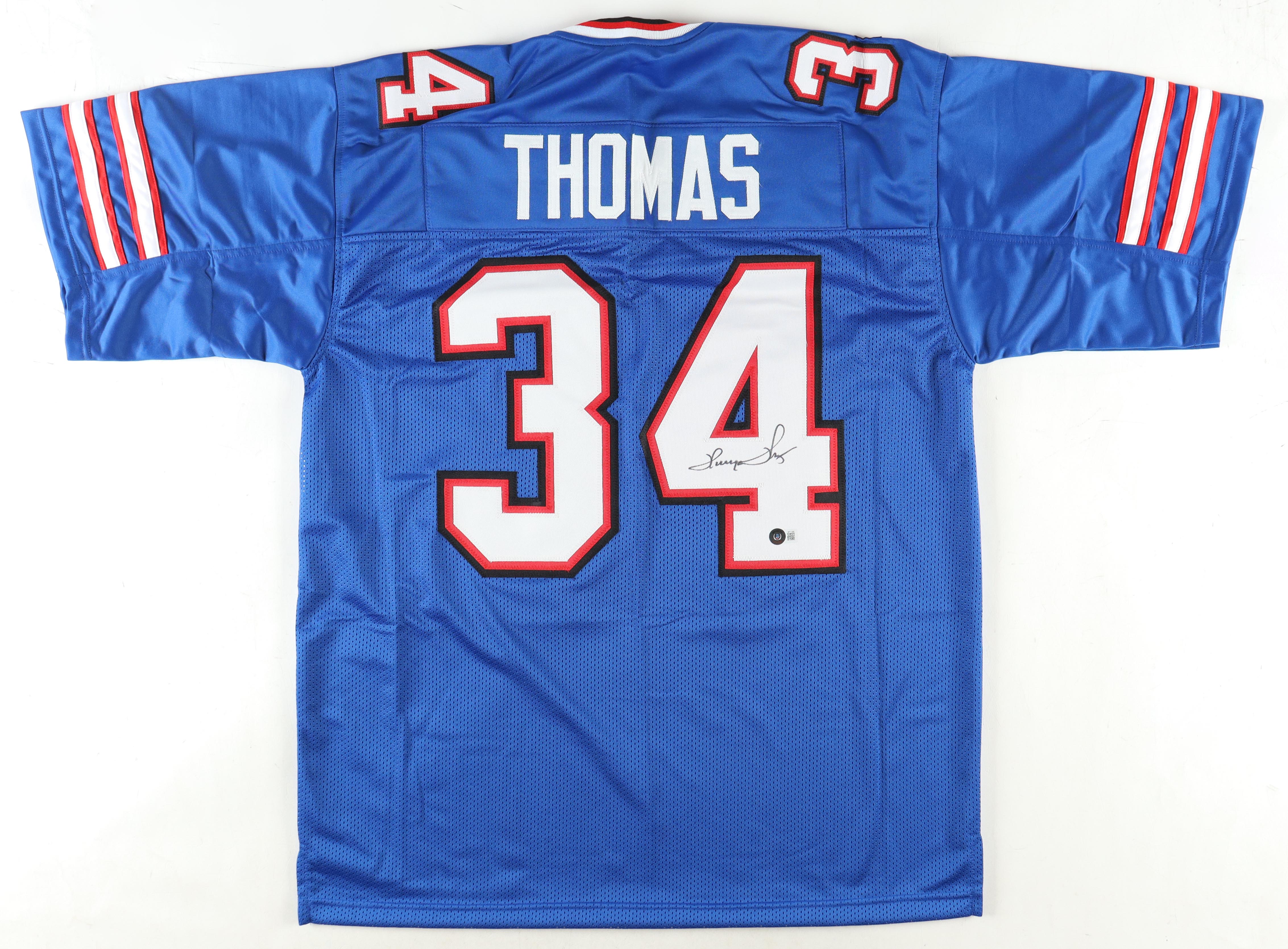 Custom jersey with everything sewn on, size XL. Hand-signed by Thurman Thomas (HOF).