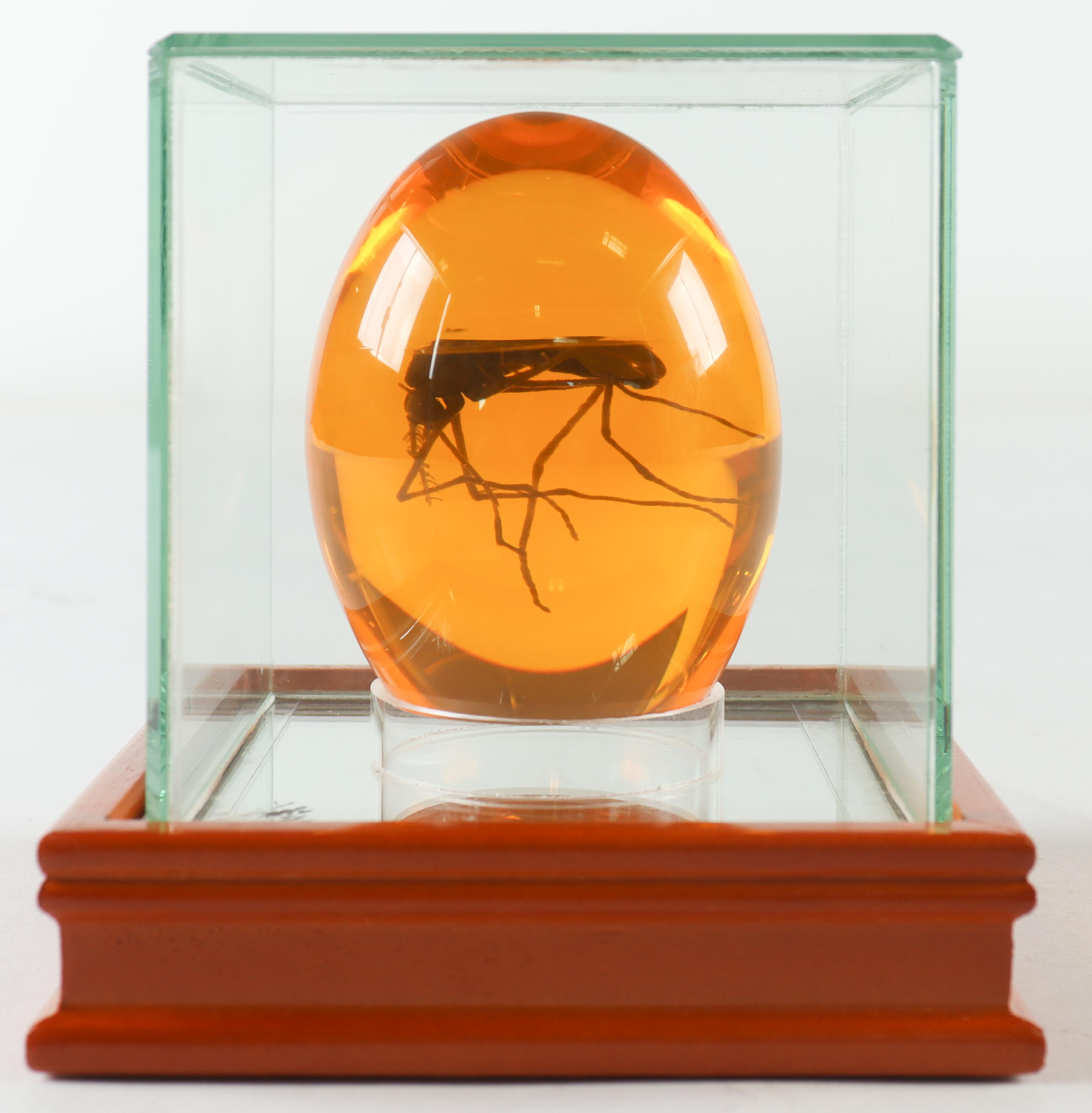 Jurassic Park Prop Replica Mosquito in Amber in Glass Display Case with Wood Base