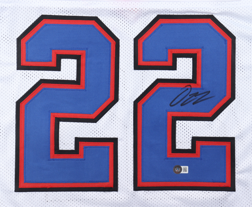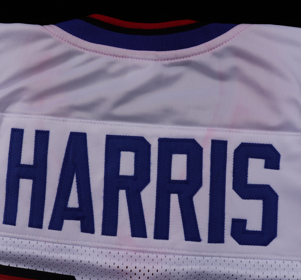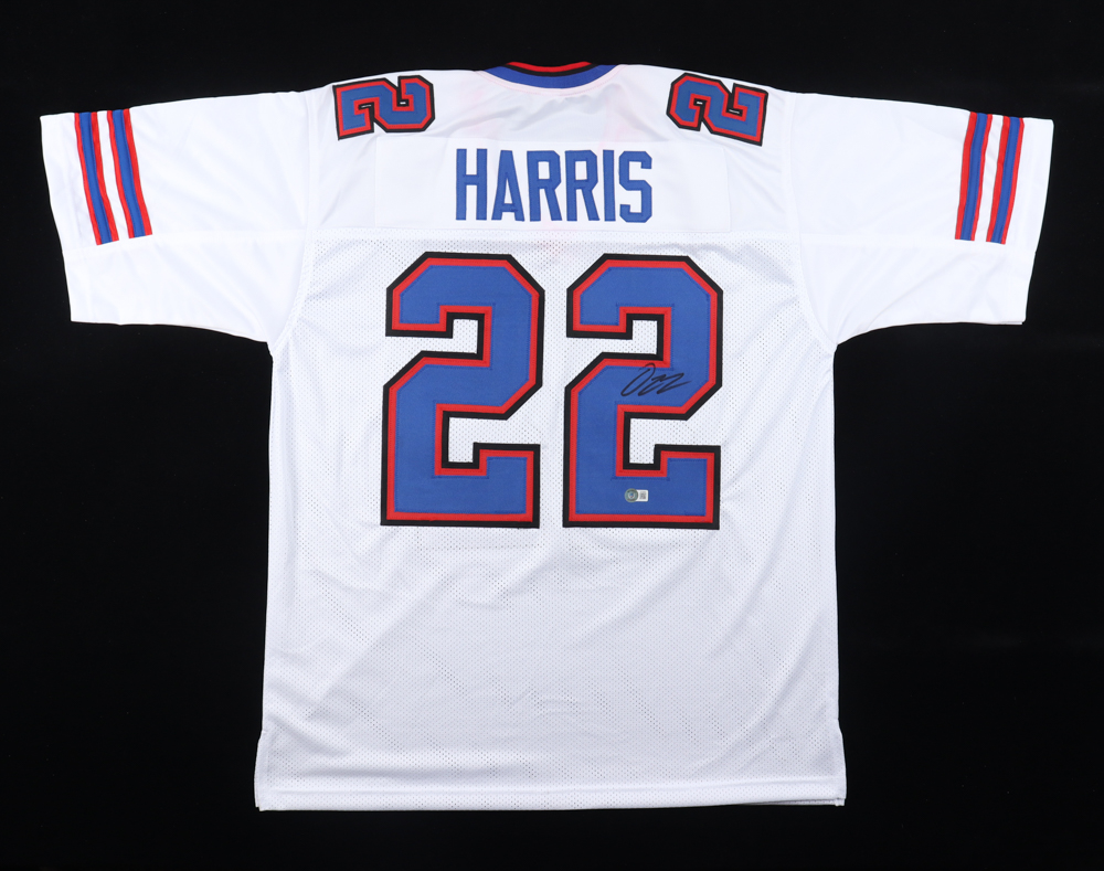 Custom jersey with everything sewn on, size XL. Hand-signed by Damien Harris. Please note, there are red stains on and around the players name.